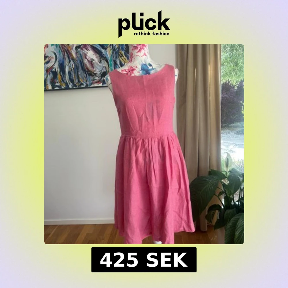 Säljer en söt rosa klänning i linne från Maria Westerlind. Klänningen har rund halsringning, knappar längs ryggen och en lätt utställd kjol. Perfekt för varma dagar och enkel att styla med accessoarer.