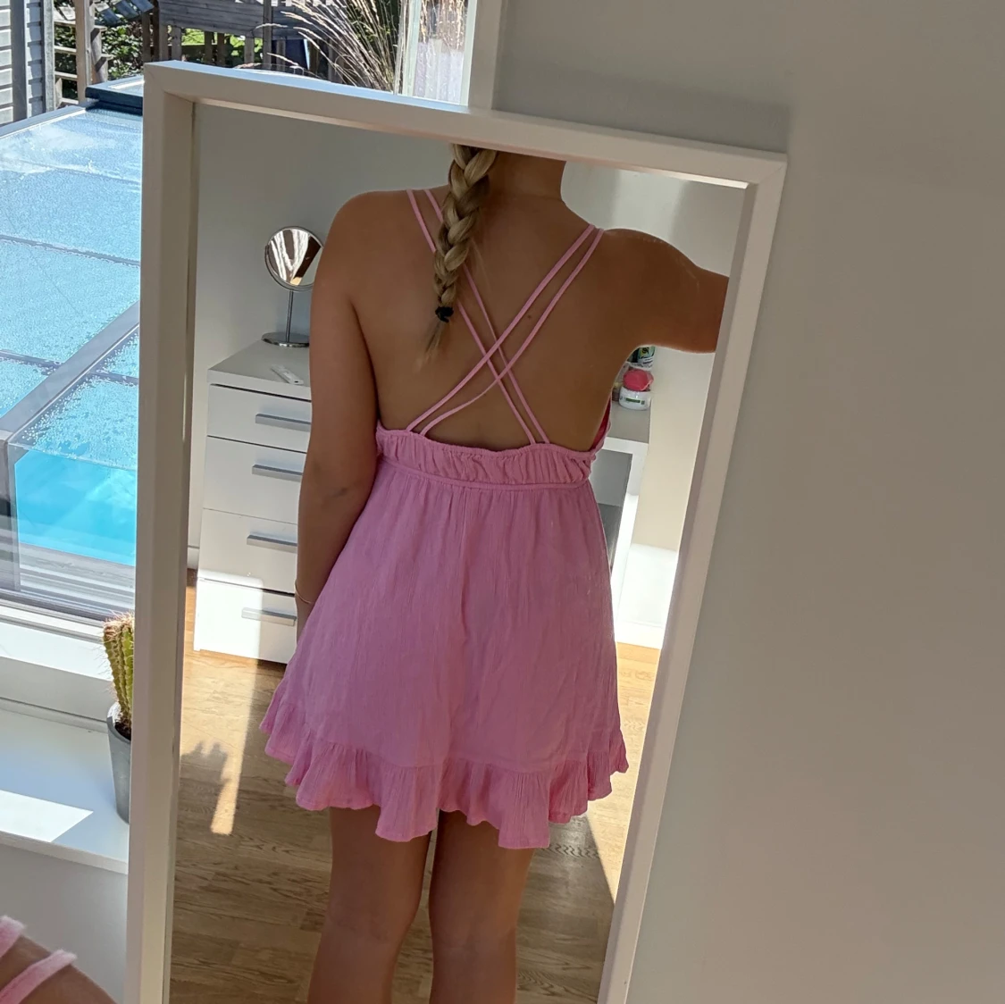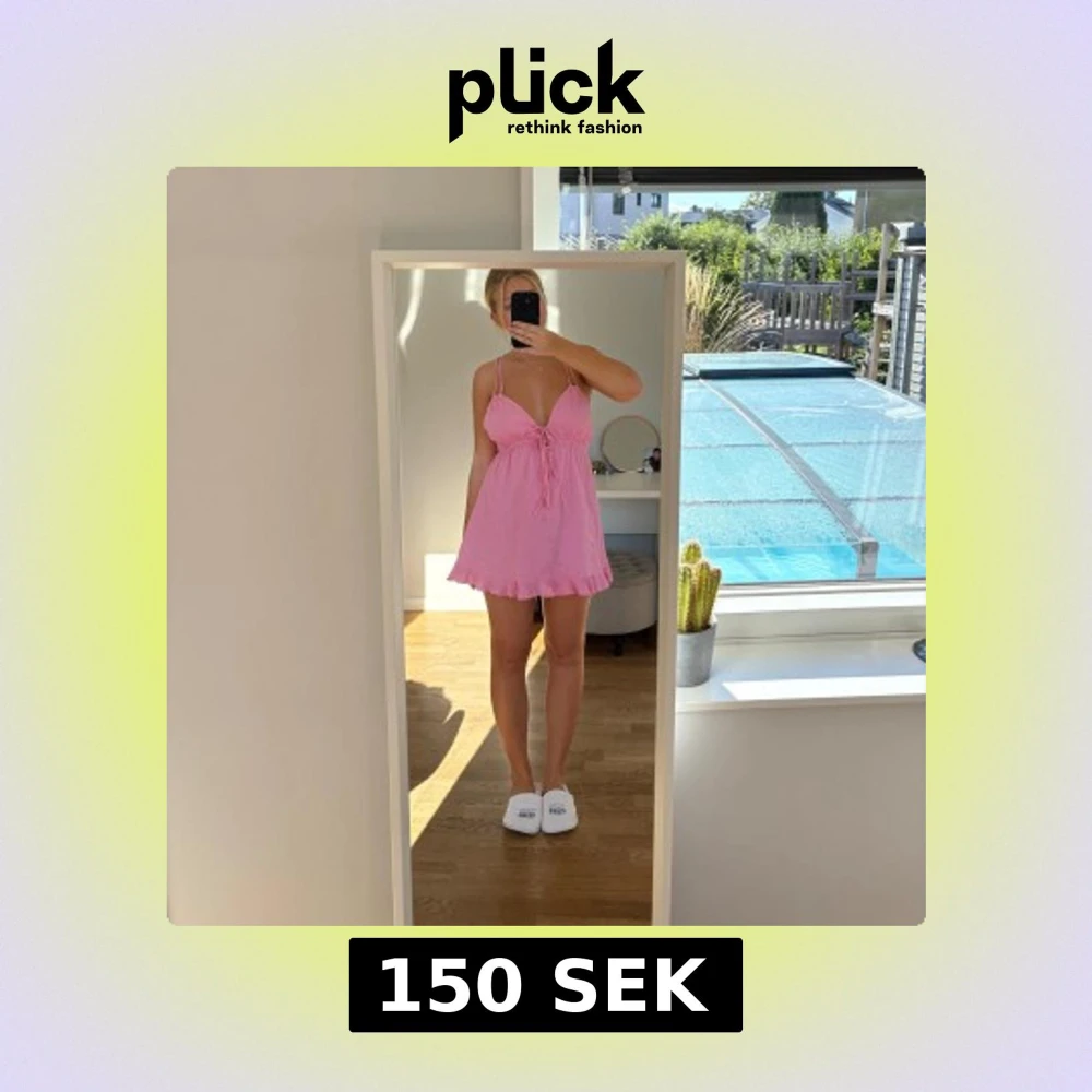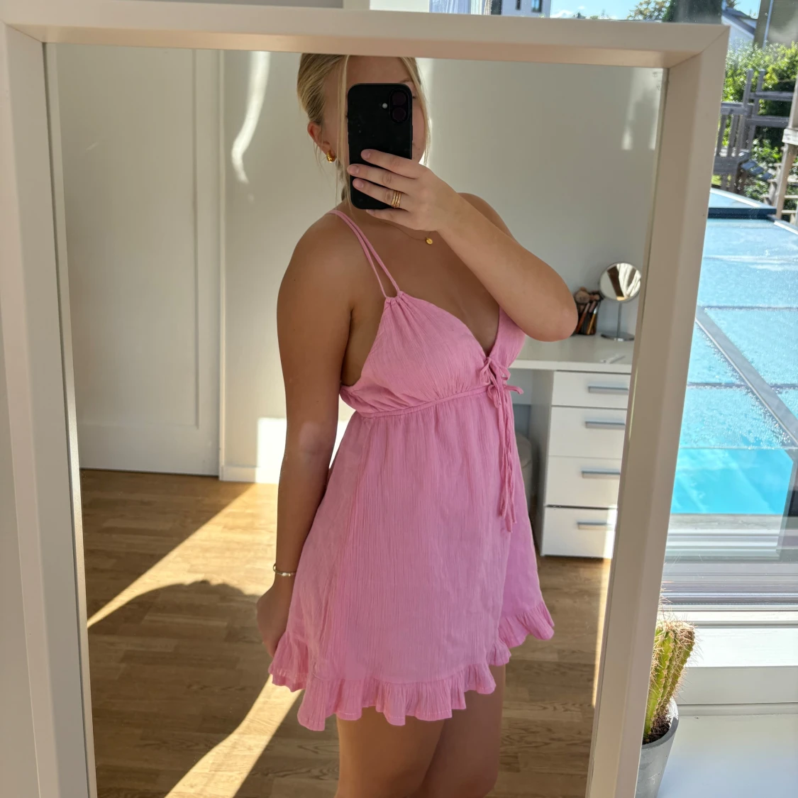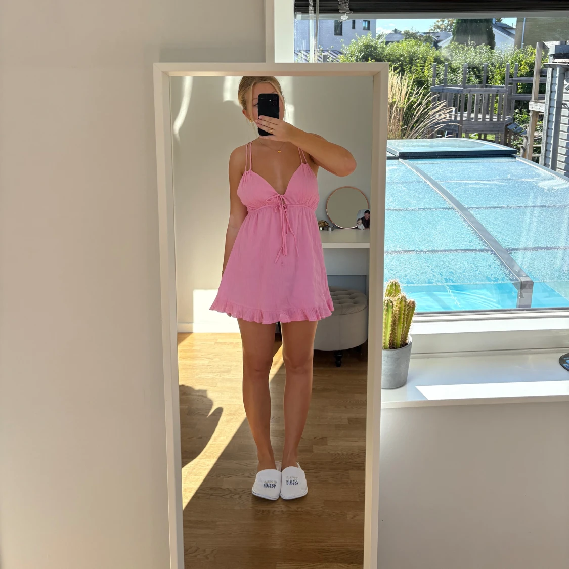 Supersöt rosa miniklänning från Gina tricot i storlek s. Jag har sytt upp klänningen då jag tyckte den var lite för lång innan, jag är 165 cm. Använd fåtal gånger.