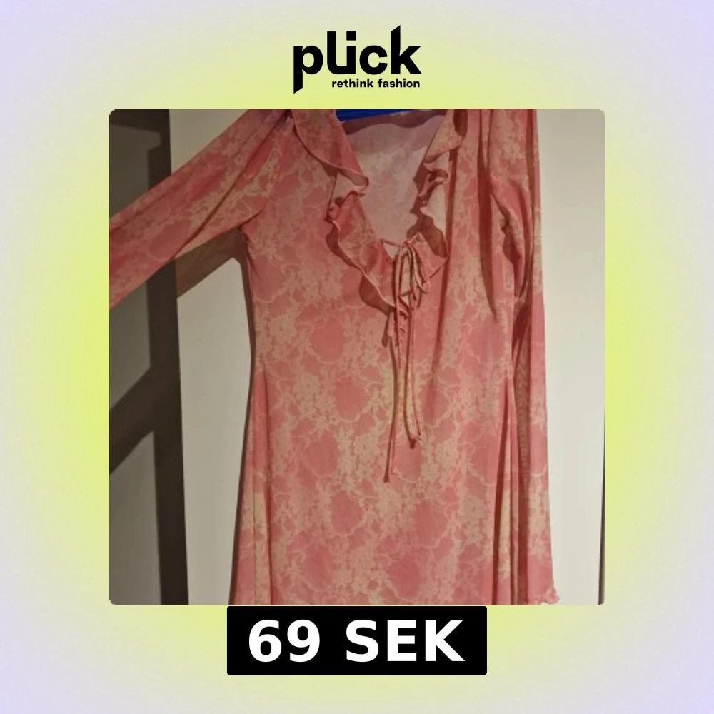 rosa mesh klänning med ett subtilt mönster och volangdetaljer vid halsen perfekt för sommarn och stranden. Klänningen har långa ärmar och en knytning framtill som ger en romantisk touch. Perfekt för en somrig look.