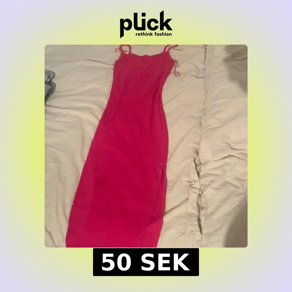 Snygg rosa långklänning med smala axelband och slits på sidan. Klänningen har en figurnära passform och är perfekt för dig som vill sticka ut. Enkel och stilren design som ger en trendig look.