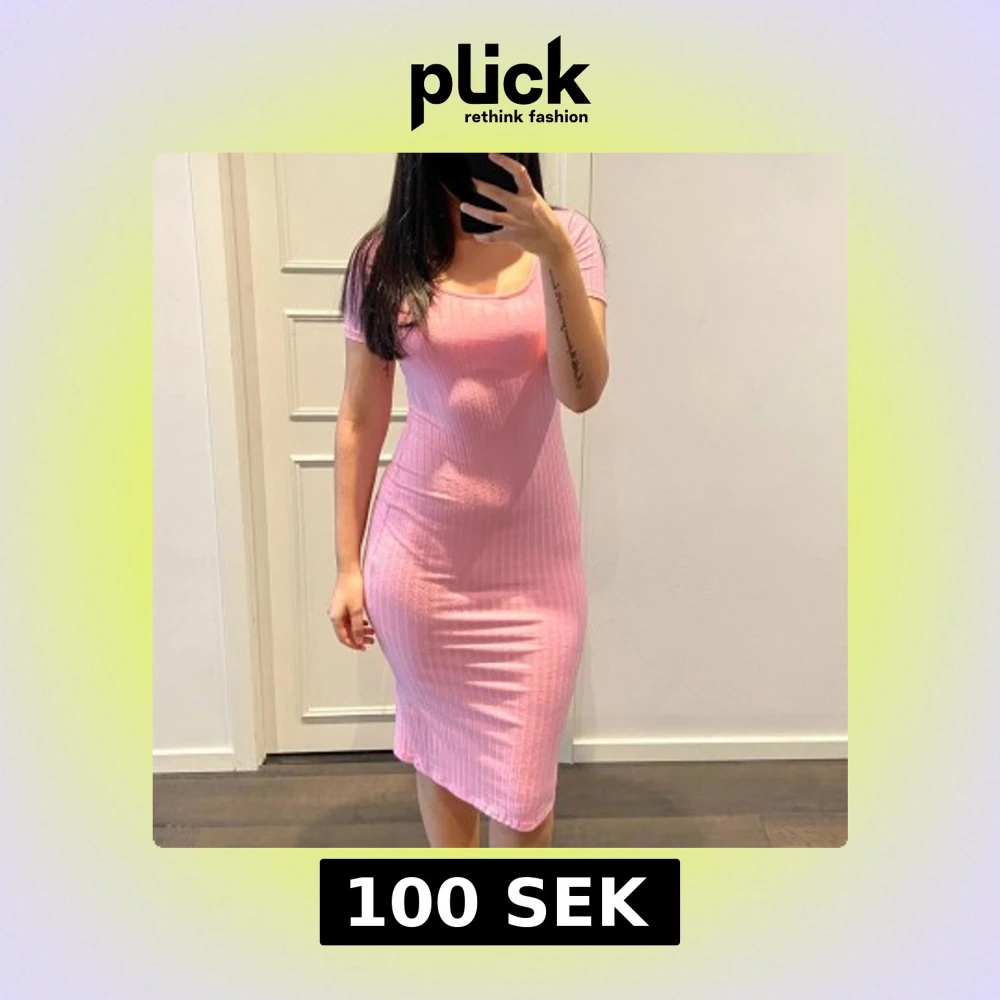 Snygg rosa ribbad klänning med korta ärmar och en tight passform. Perfekt för en somrig look. Klänningen har en enkel och stilren design som framhäver figuren.