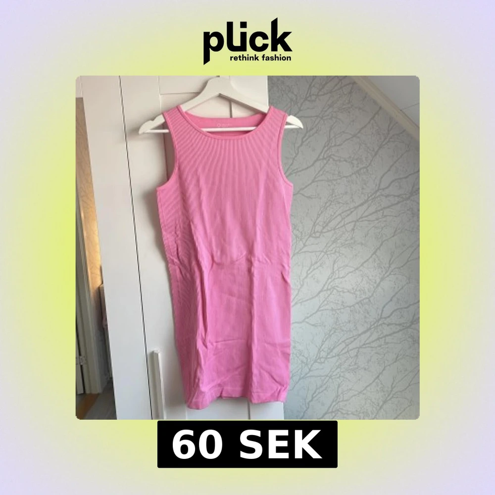 En söt rosa ribbad kortklänning från Primark. Ärmlös modell med rund halsringning och stretchigt material som sitter snyggt på kroppen. Skulle säga att den är liten i storlek så mer som en M