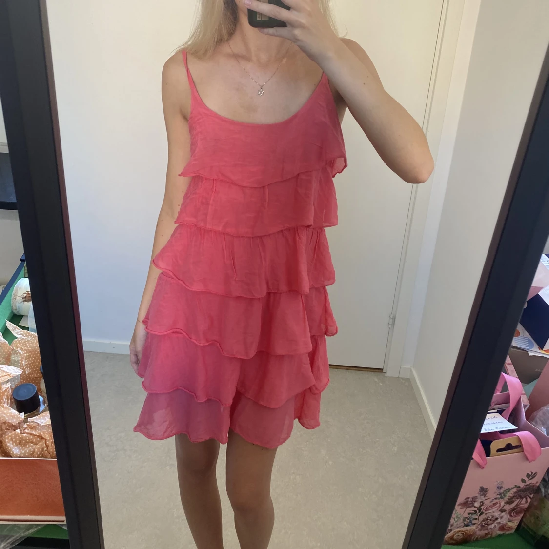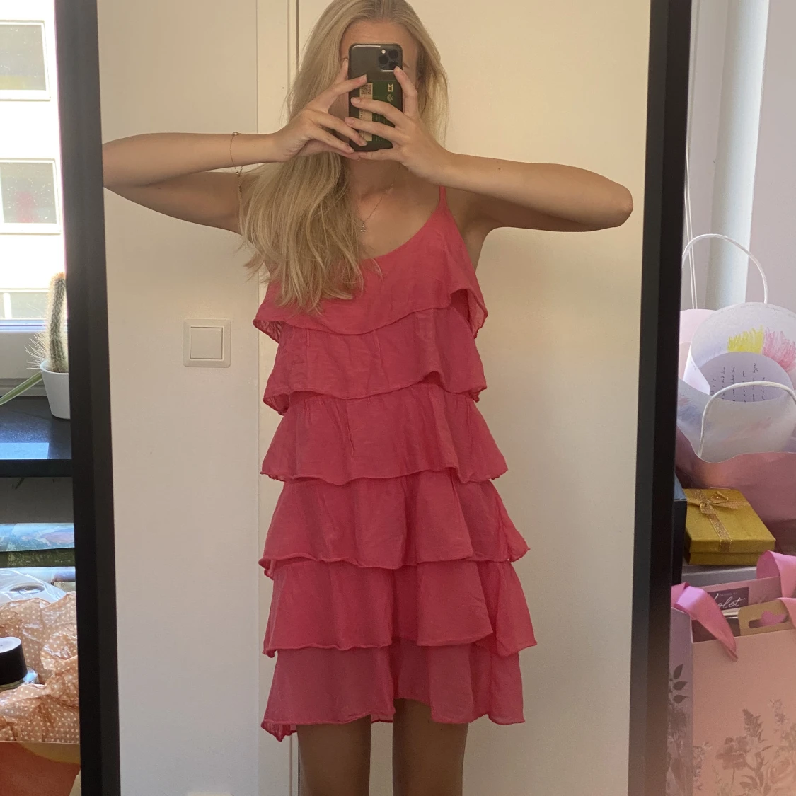 Snygg rosa volangklänning med justerbara axelband🩷🩷