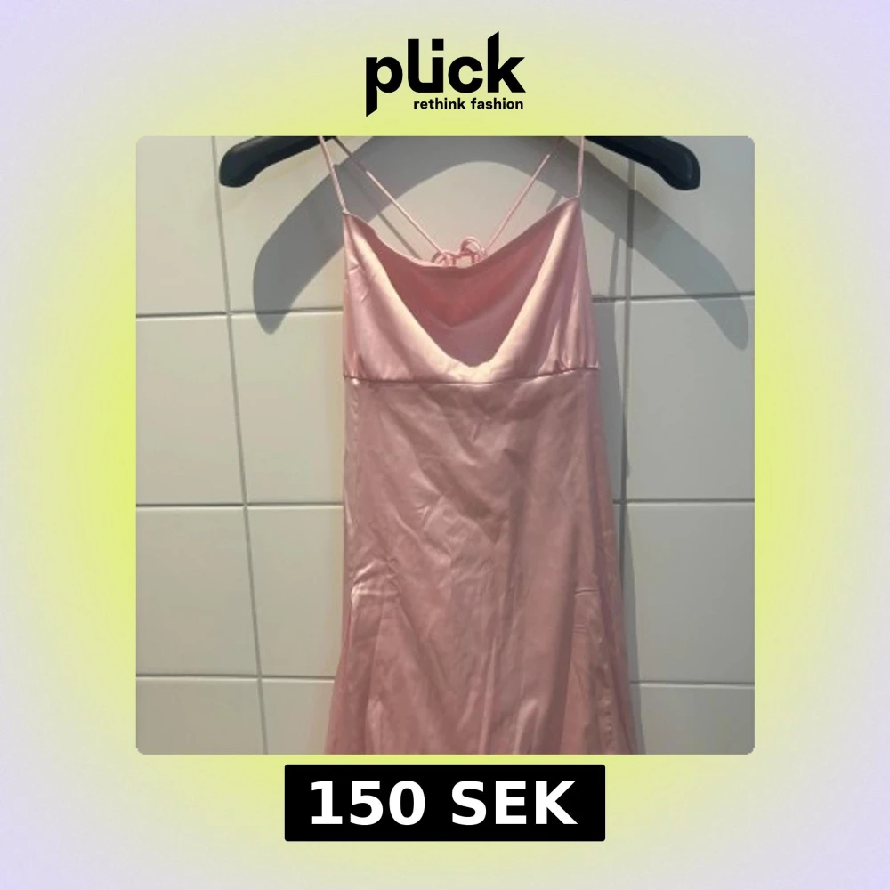 Elegant rosa klänning i siden från Nelly med smala axelband och v-ringad design. Klänningen har en öppen rygg med knytband för en justerbar passform. Perfekt för speciella tillfällen. Oanvänd med prislapp på.