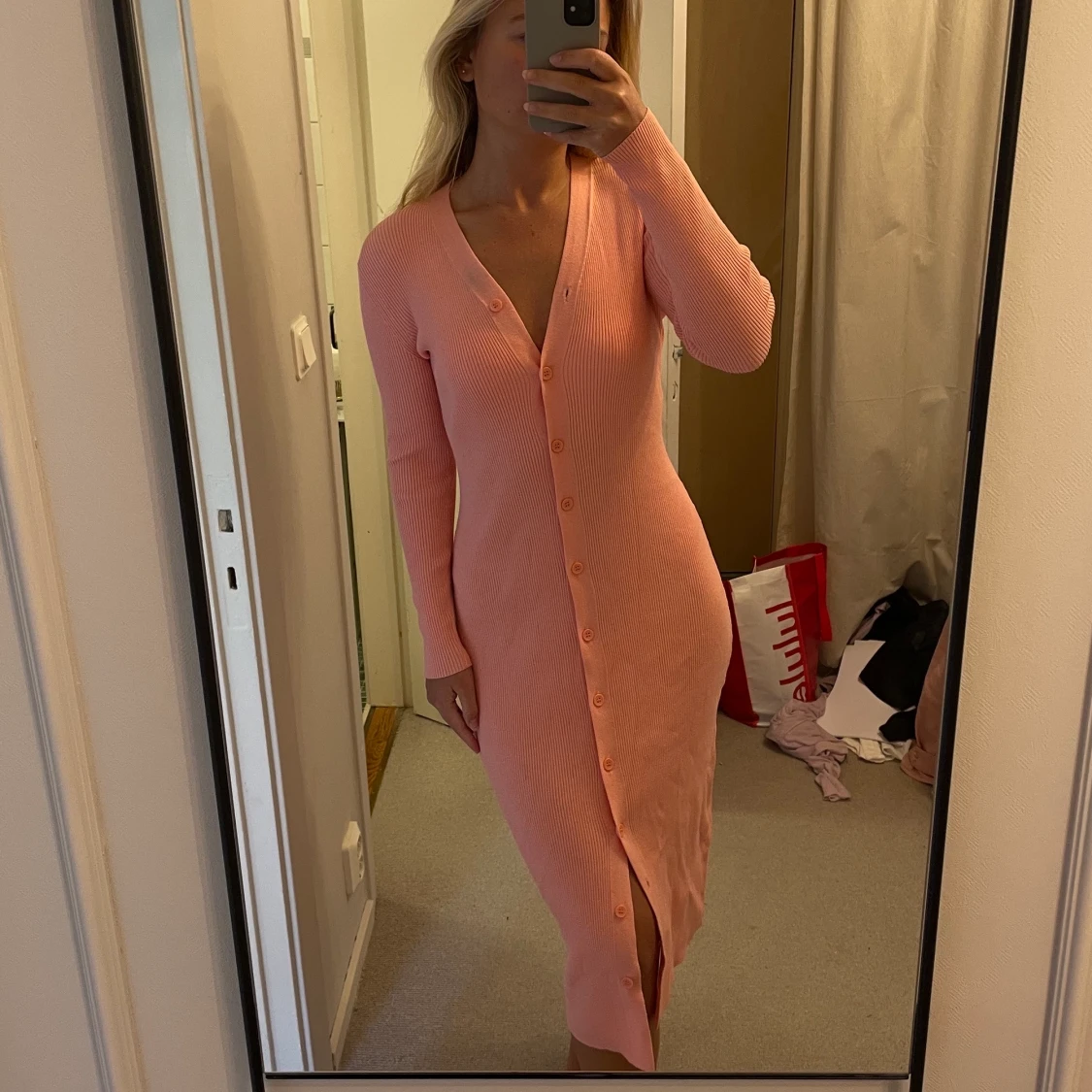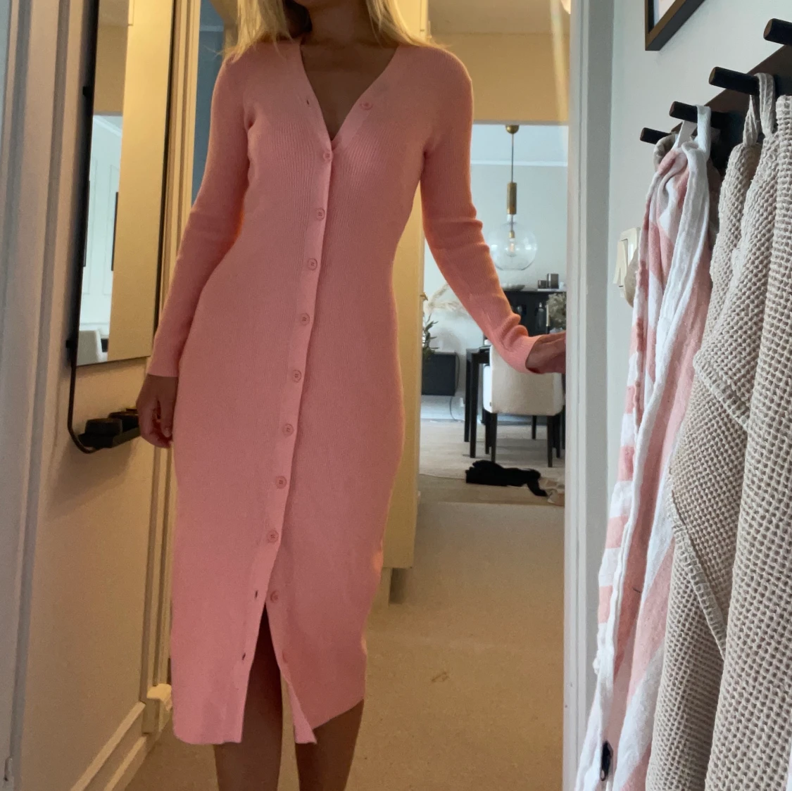 Otrolig klänning, okänt märke. Jättefint stickat material, passar S. Rosa! Liten fläck vid urringning (skickar närmre bild vid intresse)