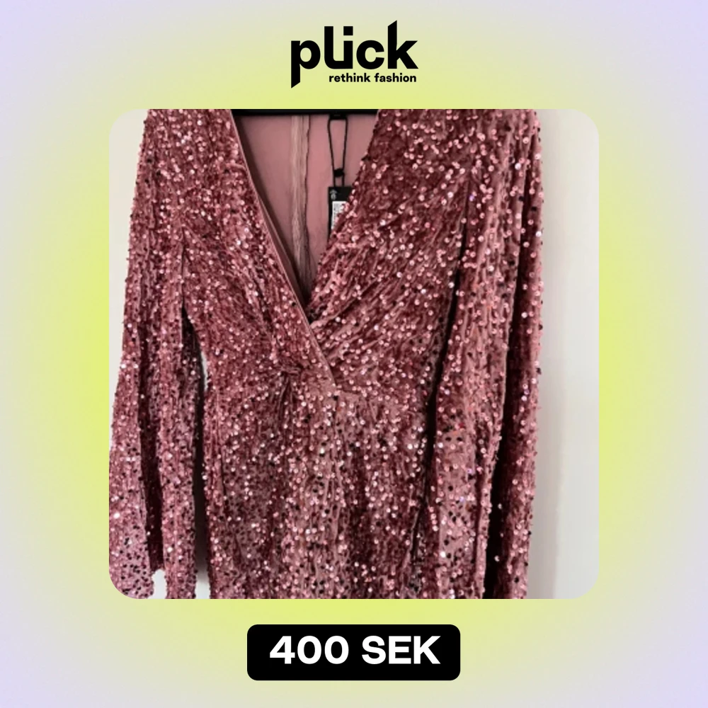 Jättefin PETITE rosa omlottklänning med paljetter och utsvängda armar. Helt ny med prislappen på storlek 40. Endast testad, Ordinare pris: 630 kr. Skriv om du vill ha fler bilder:)