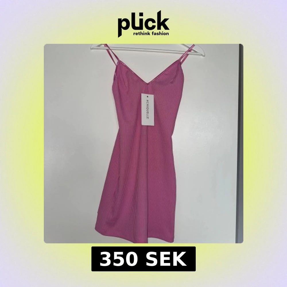 Säljer en söt rosa ribbad klänning från Chiquelle med smala axelband och v-ringad hals. Klänningen är kort och har en figurnära passform som passar perfekt till sommaren. Enkel men stilren design som är lätt att matcha.