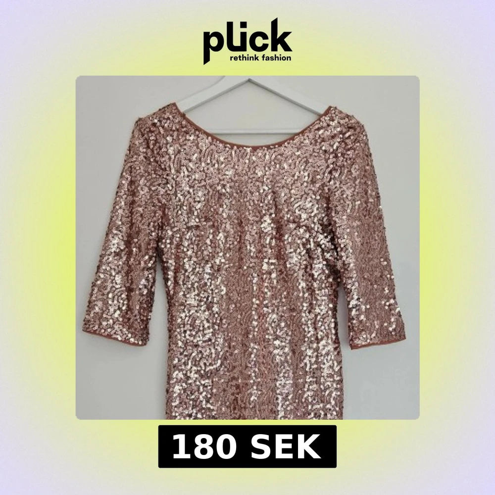 Kort paljettklänning från Forever 21 i roséguld. Djup v-ringning i ryggen med dragkedja bak och halvlånga ärmar. Figurnära passform. Använt få gånger , mycket bra skick. Storlek S
