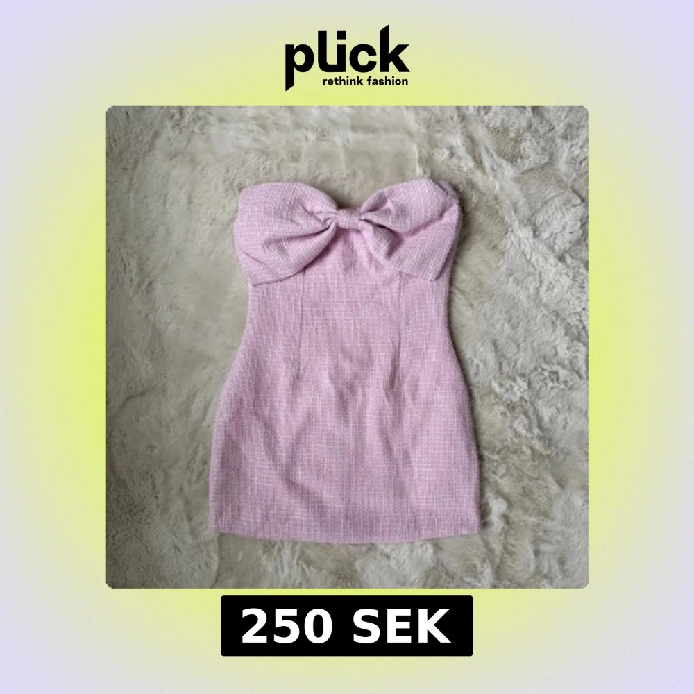 En väldigt fin rosa klänning i boucle med en stor rosett 🎀 stl xs/34