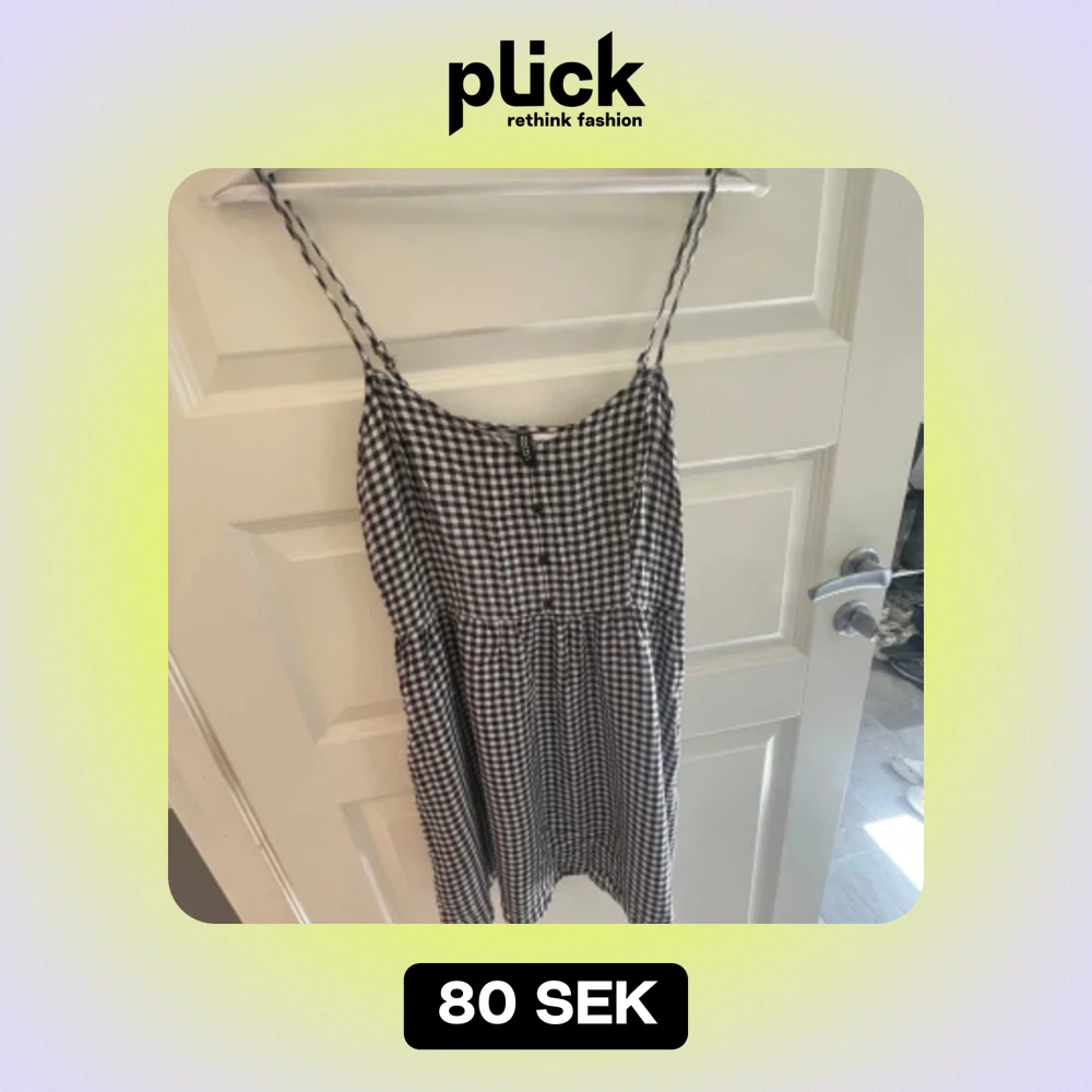 Storlek 38, supersöt rutig klänning som både kan kläs upp och användas mer casual. Är lite kortare än till knäna!