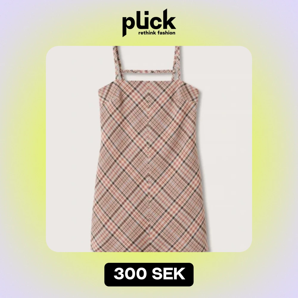Rutig klänning med tunna axelband och dragkedja i ryggen. Köpt från Mango. Mycket skönt material med 60 % viskos, 38 % polyester och 2 % elastan. Innerklänning/foder i 100 % polyester. Aldrig använd!