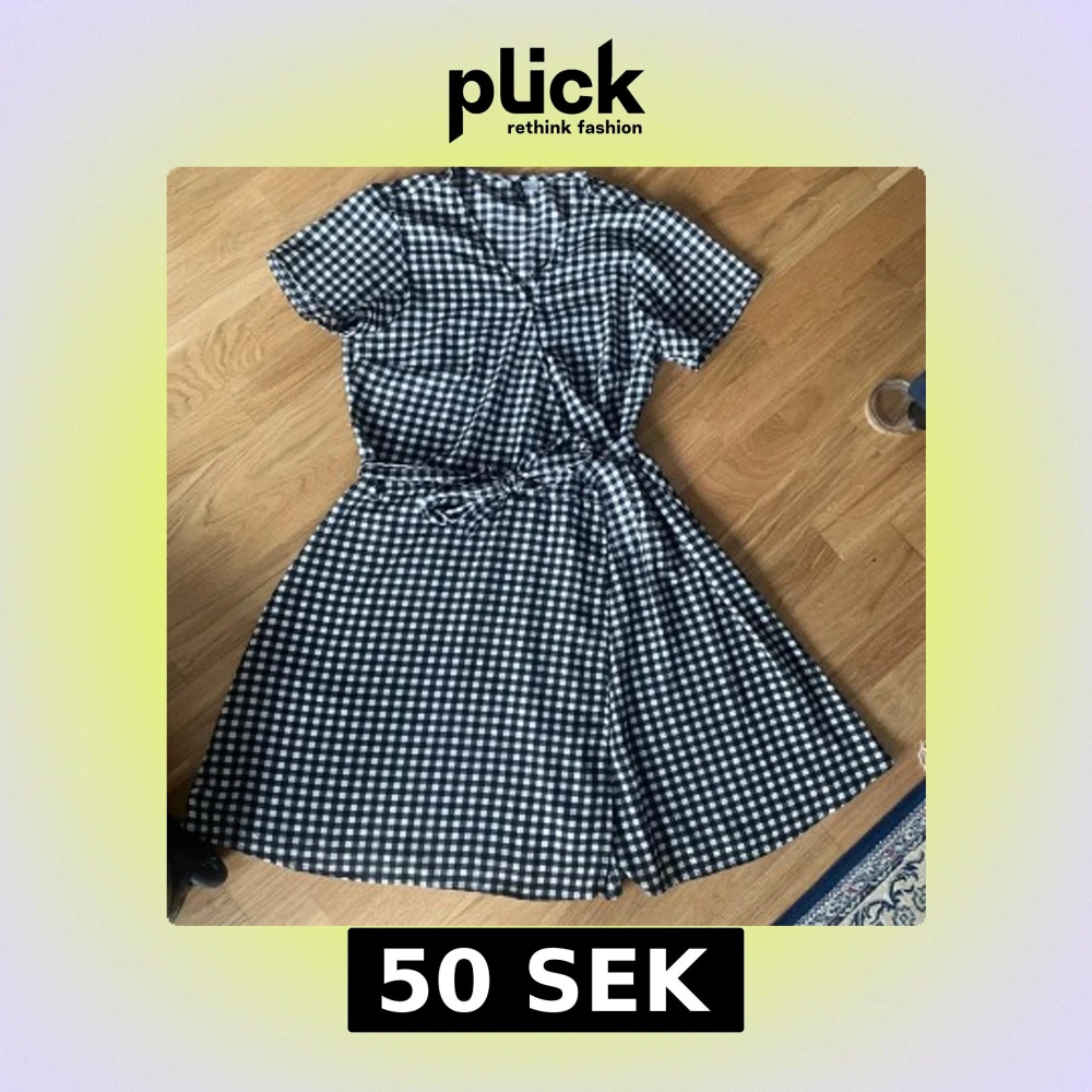 Supersöt svartvit rutig kortklänning från H&M med omlottmodell och knytband i midjan. Klänningen har korta ärmar och v-ringning, perfekt för en chill sommardag. Tunt och skönt bomullstyg som känns luftigt och bekvämt. Passar 34-38 s-M