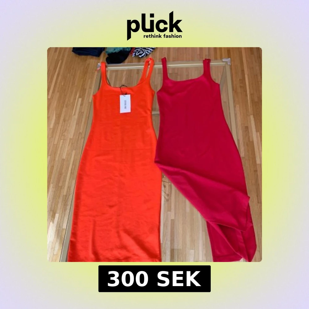 Säljer tre stilrena långklänningar i bomull – en orange, en röd och en gul. Med slits på baksidan. Alla har ärmlös design och figurnära passform. Perfekta för dig som gillar färg och enkelhet. Den gula klänningen har en snygg knytdetalj vid bröstet. 1 för 125kr alla tillsammans för 300kr. Xs/s