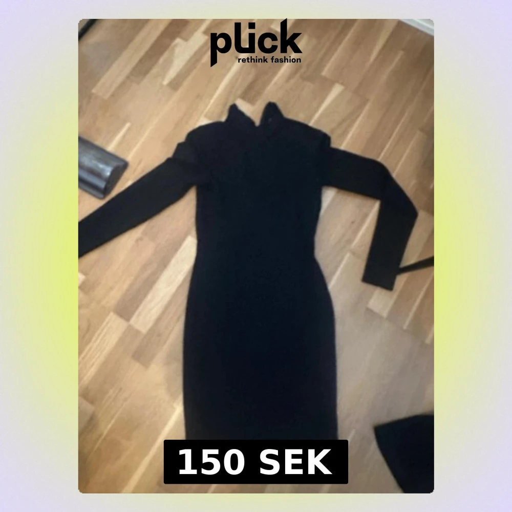 Säljer en svart, långärmad klänning med figurnära passform och hög krage. Klänningen har en dragkedja i ryggen som ger en snygg detalj.