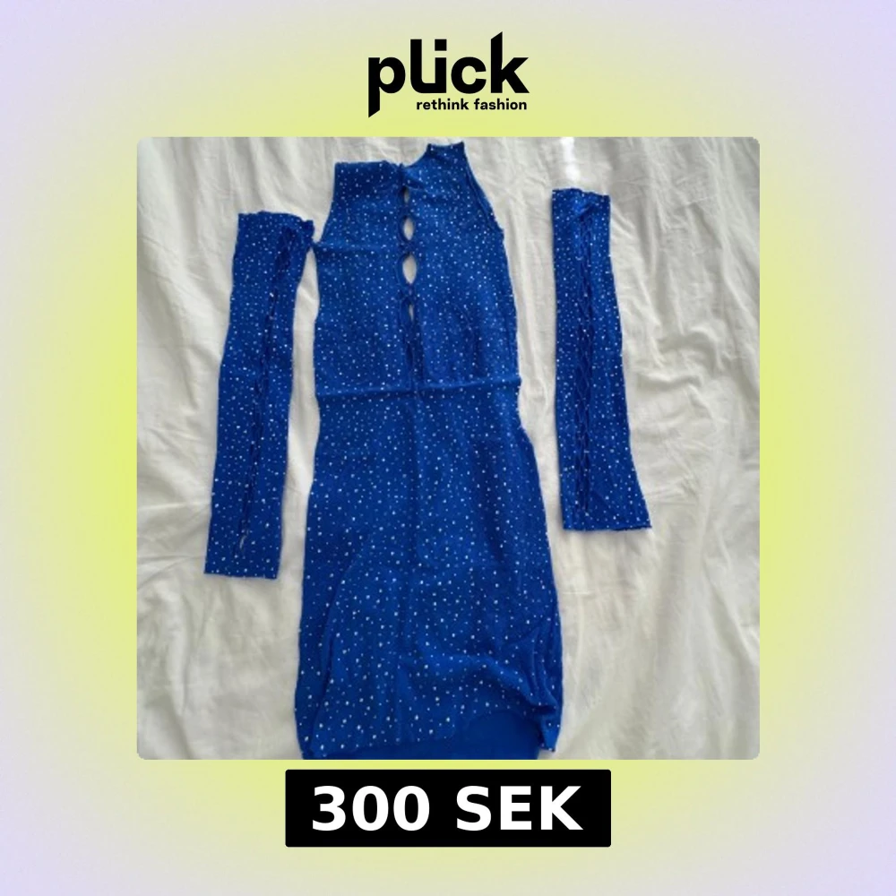 Snygg blå kortklänning med glittriga prickar och avtagbara ärmar. Klänningen har snörningsdetaljer framtill och är figurnära. Perfekt för dig som vill sticka ut med en unik look.