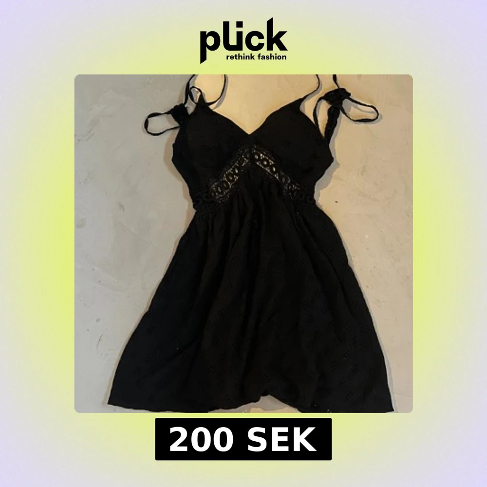 Köpt på Teneriffa i en liten butik. Snygg svart klänning med spetsdetaljer och justerbara axelband. Aldrig använd.