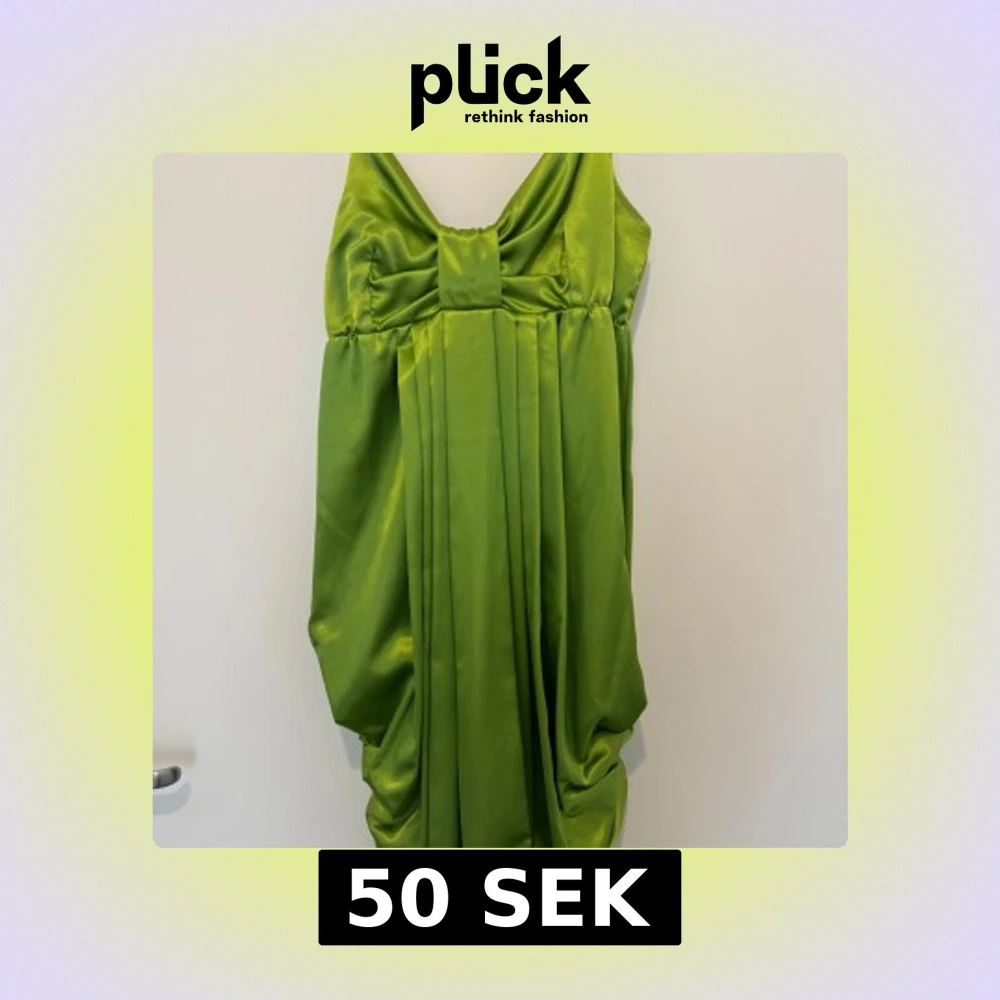 Snygg grön axelbandslös klänning i satin med draperad design. Perfekt för en elegant look med en unik stil. Klänningen har en vacker rosettdetalj framtill som ger en extra touch.