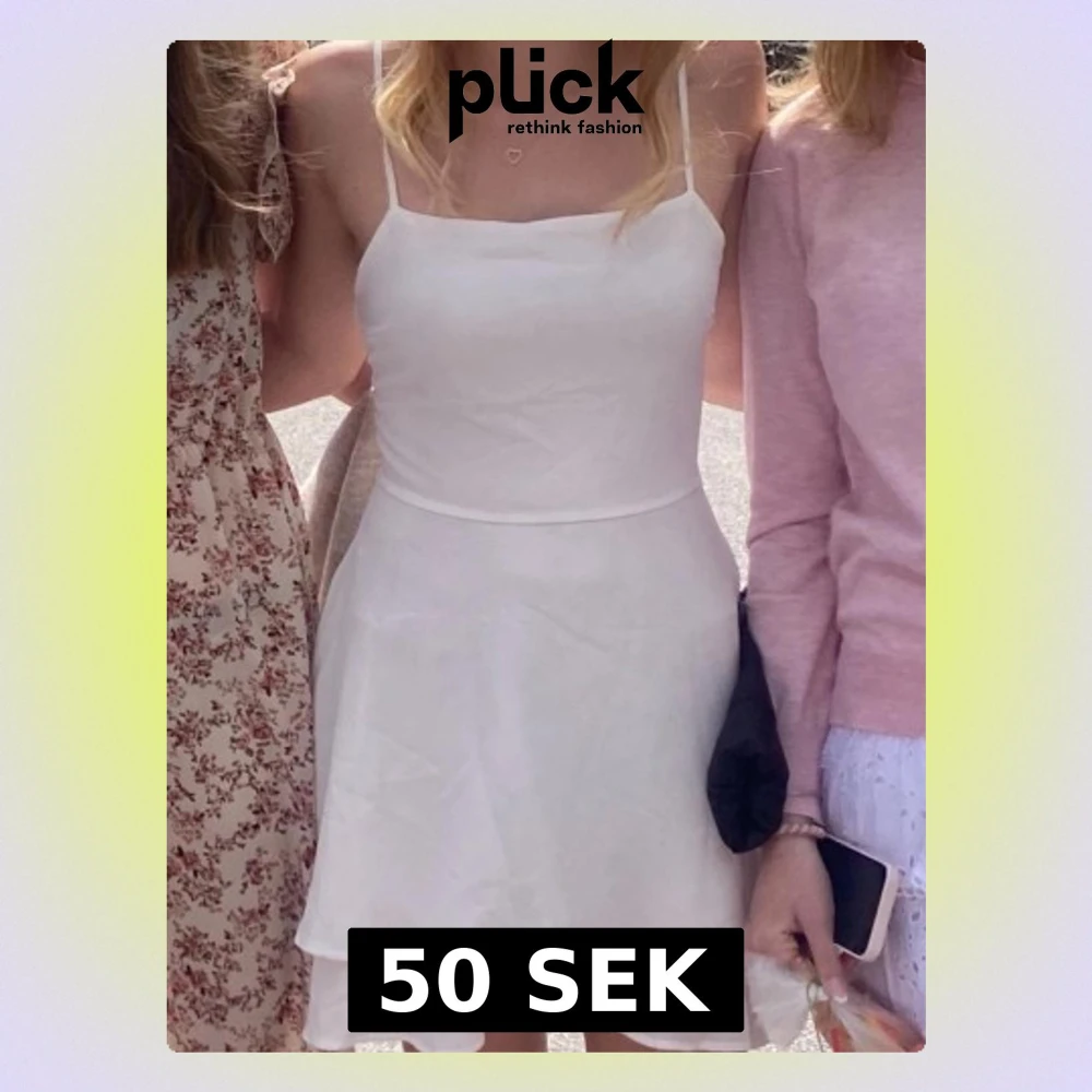 Supersöt vit kortklänning med tunna axelband och öppen rygg med snörningsdetalj. Klänningen har en lätt utsvängd kjol och dubbla lager tyg för extra flow. Perfekt för sommarens alla tillfällen!