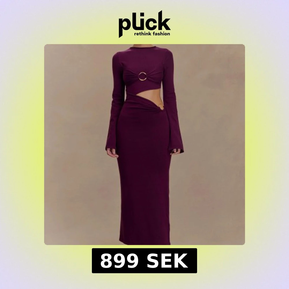 Säljer en vinröd långklänning med lång ärm och snygg cut out-detalj i midjan. Klänningen har en guldig ring framtill och figurnära passform. Perfekt för dig som vill sticka ut med en trendig och elegant look.Mycket fin material och ser ”dyr” ut i verkligheten av märket Meshki.Passar en S-M i storlek då det är fint stickad klänning.Medföljer i originalförpackning med prislapp på.En klänning som du lär få många komplimanger om.