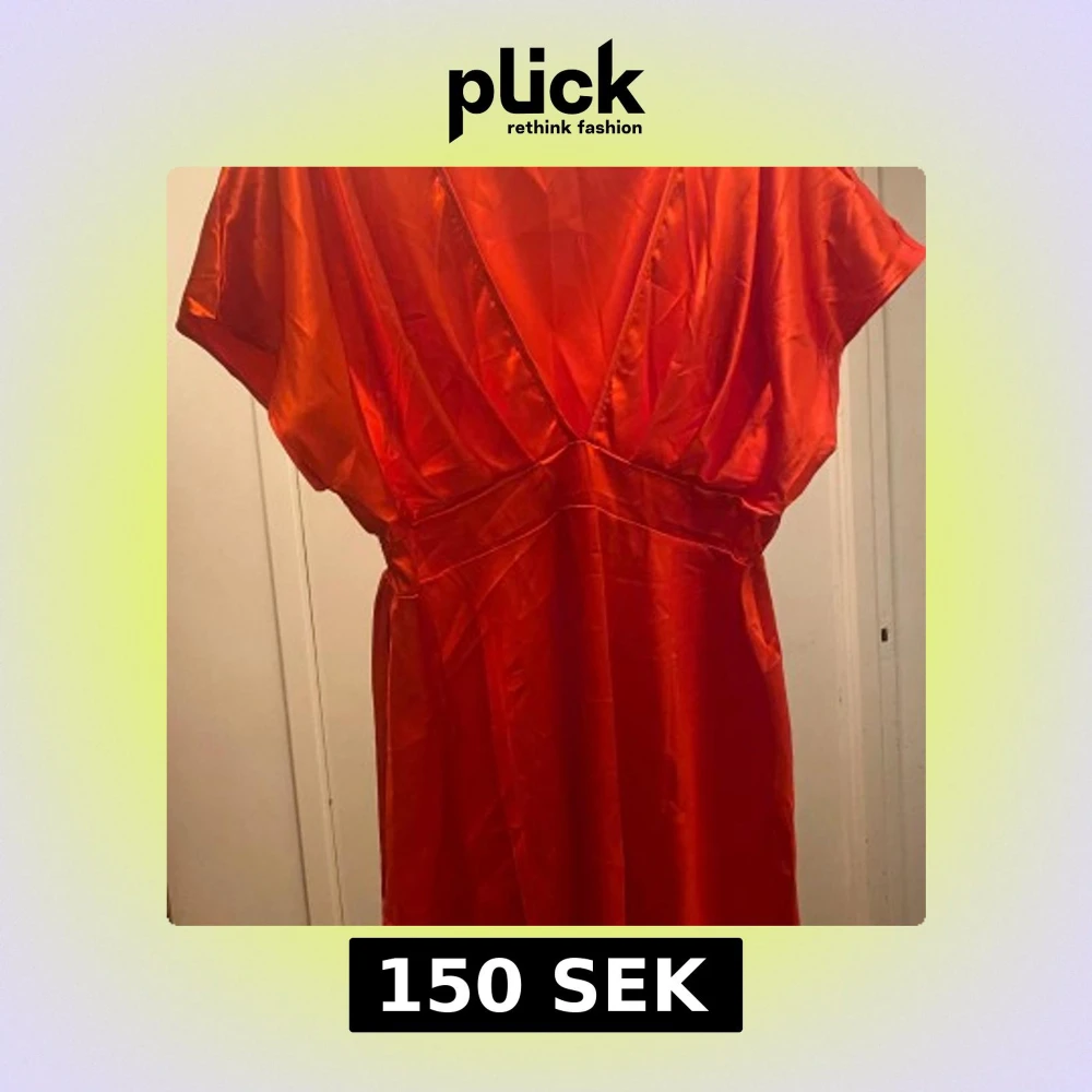 Supersnygg röd kort klänning i glansig satin med djup v-ringning och markerad midja. Klänningen har korta ärmar och en flowy kjol som ger en riktigt trendig look. Perfekt för dig som vill sticka ut och känna dig extra glam.