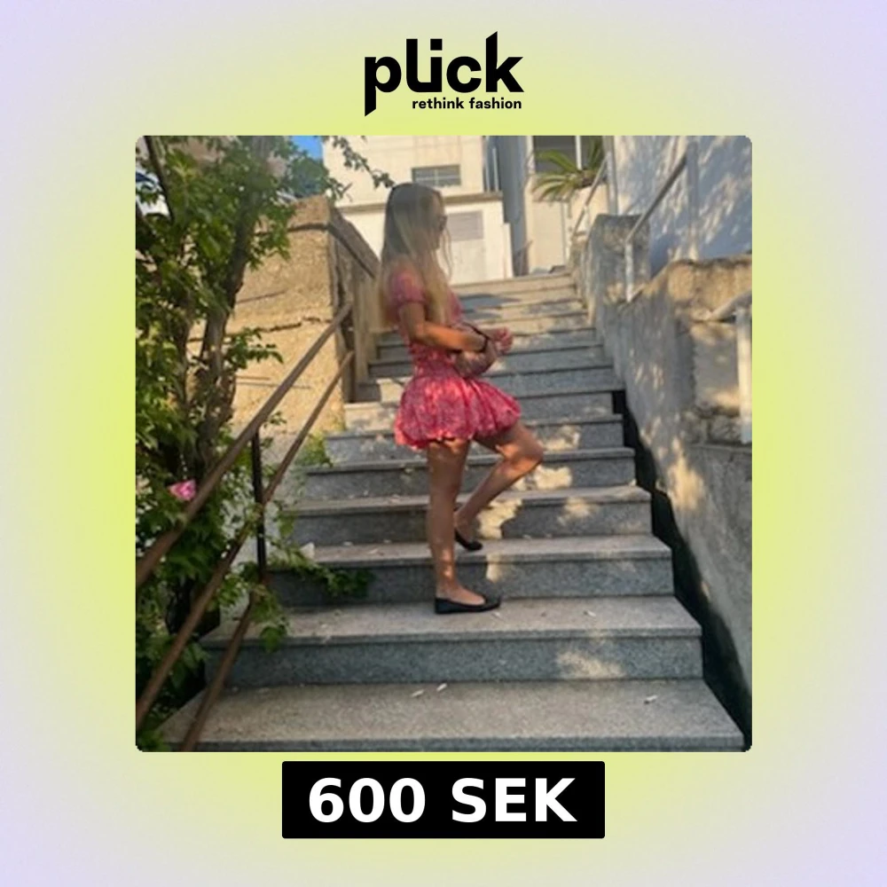 Superfin rosa kortklänning med blommigt mönster och volang nertill. Klänningen har offshoulder-ärmar och en slim passform som framhäver figuren. Perfekt för sommarens alla tillfällen, lätt och skön att bära. Materialet känns som bomull eller polyester.