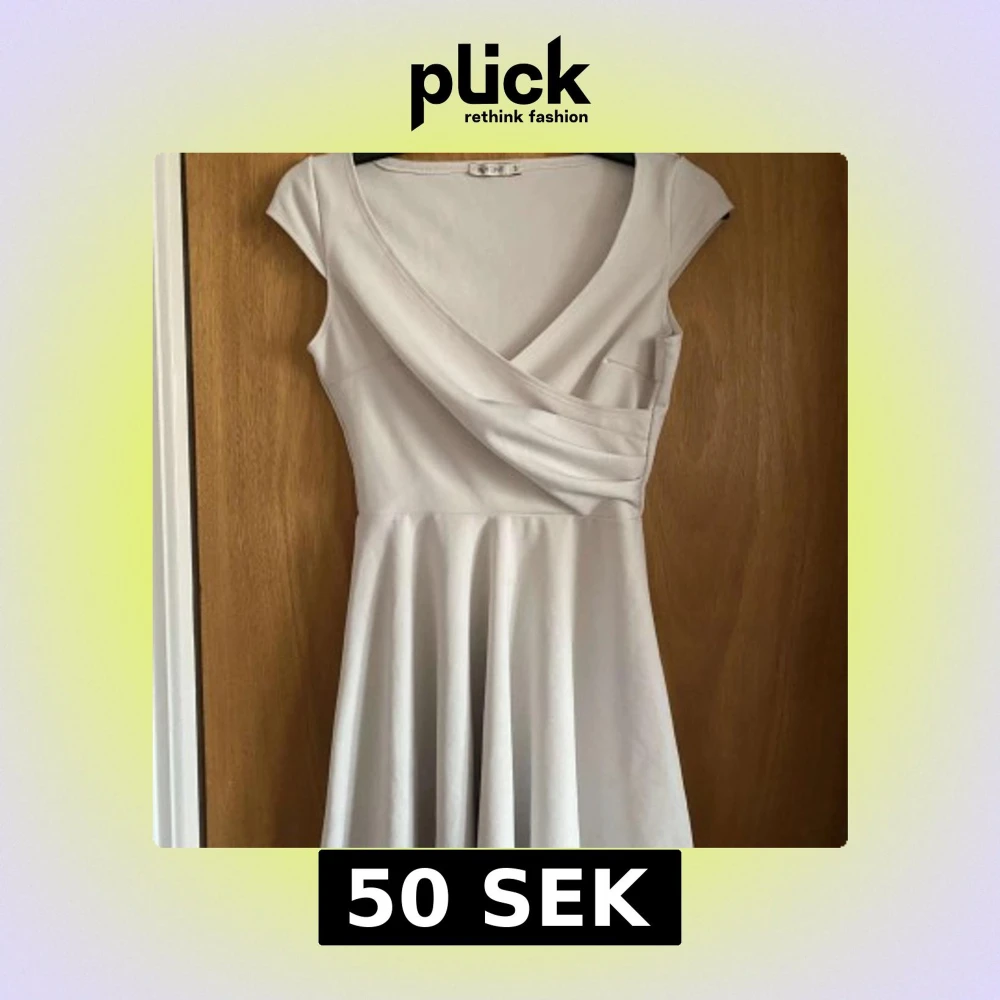 vit kortklänning från NLY One med omlott-detalj och v-ringning. Klänningen har korta ärmar och ett flowy kjolparti som ger en feminin siluett. Använd fåtal gånger.