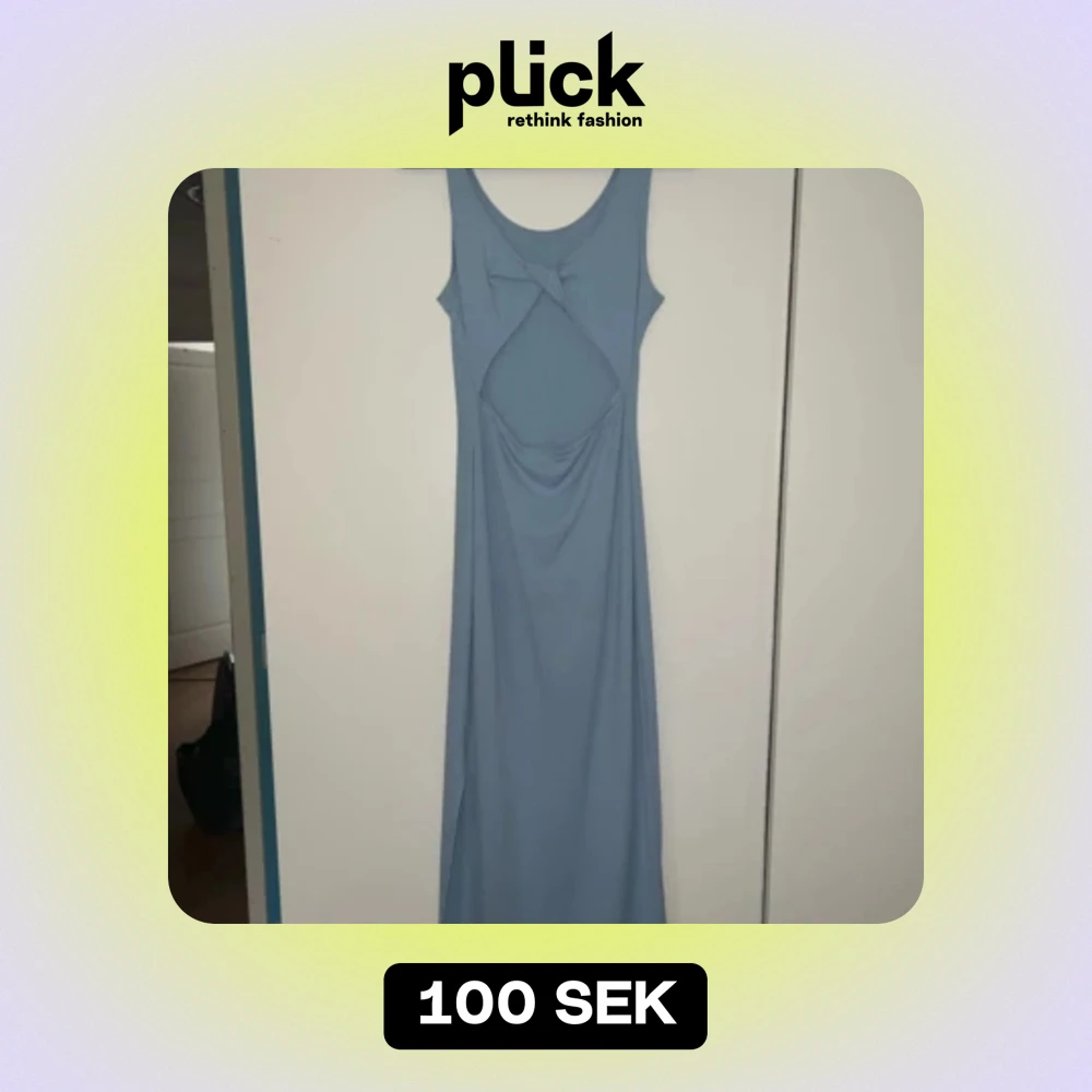 En tunn babyblå klänning från Shein i storlek S Klänningen har öppen rygg (se bild) samt slits