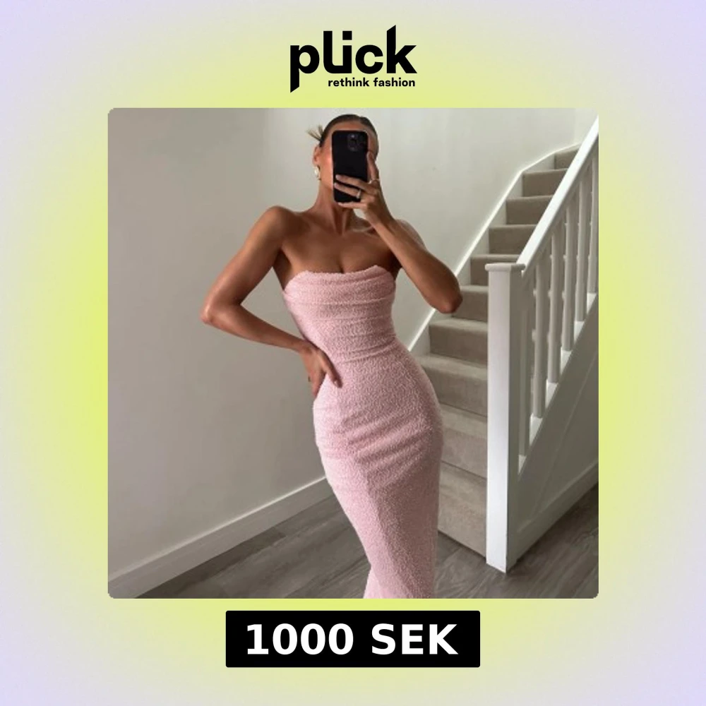 Superfin ljusrosa långklänning med axelbandslös design och figurnära passform. Klänningen har en strukturerad, bubblig yta som ger en unik look. Perfekt för dig som vill sticka ut med en elegant och feminin stil. Endast använd en gång. Oh polly kartongen finns även kvar!