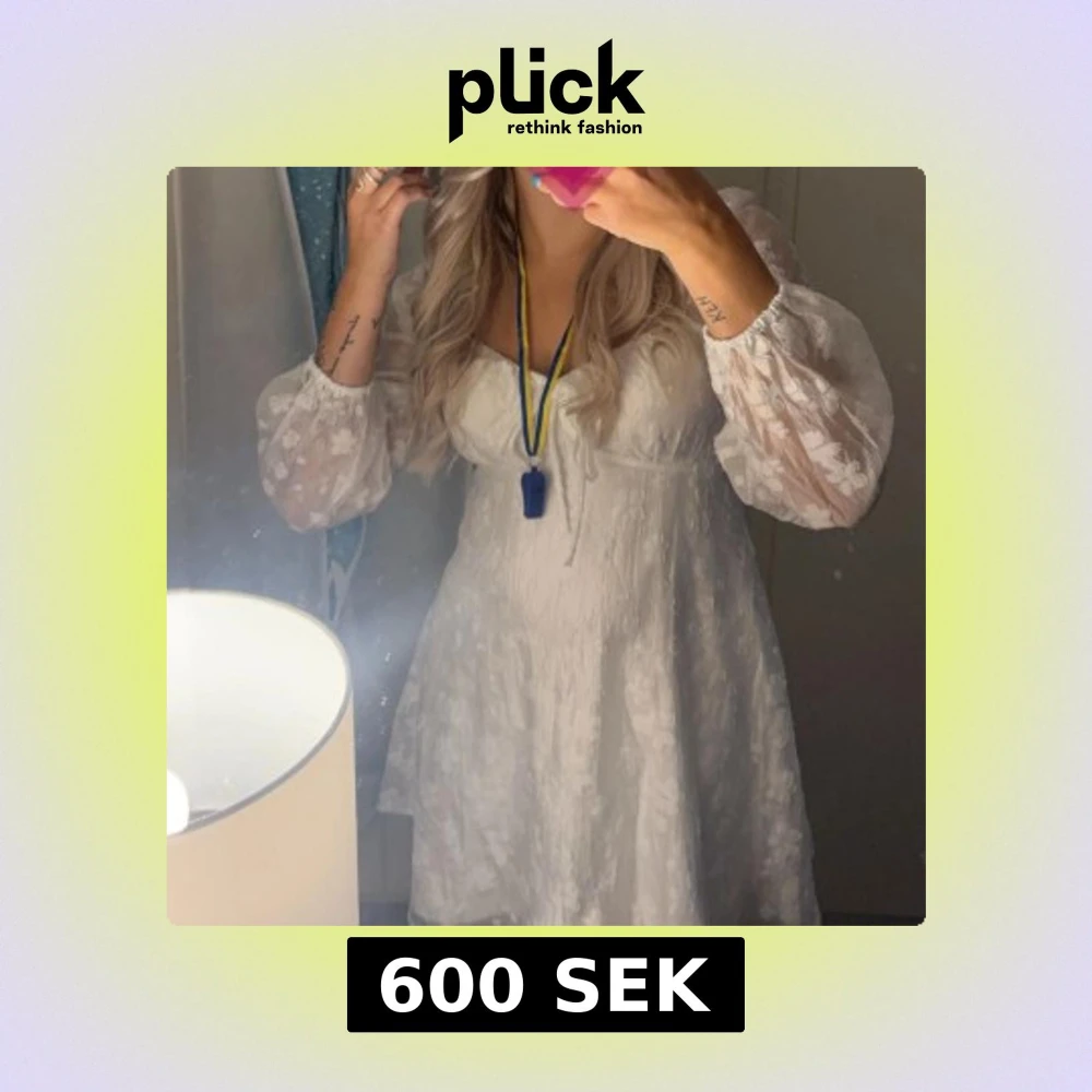 Säljer min fina studentklänning med långa ärmar. Klänningen har en knytning bak och öppen rygg. Köpte den ny för 1200kr och endast använd en gång. Önskas att ja kollar märket på klänningen så fixar jag det. Storlek S