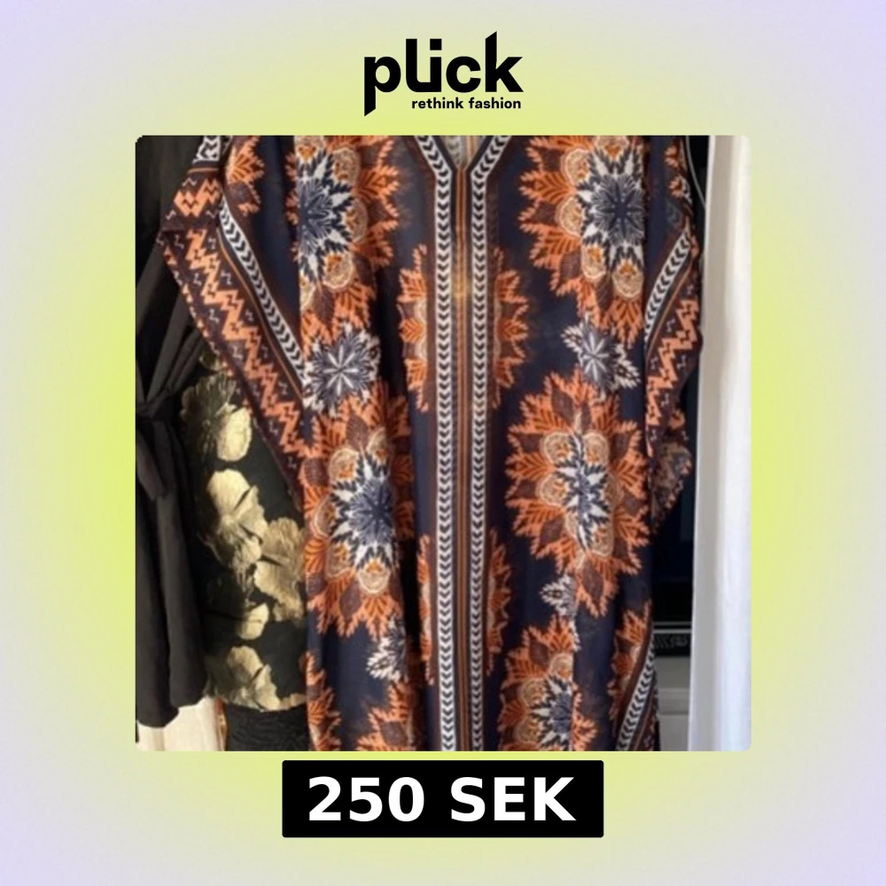 Snygg kaftan med ett iögonfallande mönster i blått och orange. Perfekt för en bohemisk look med sina detaljerade mönster och avslappnade passform.