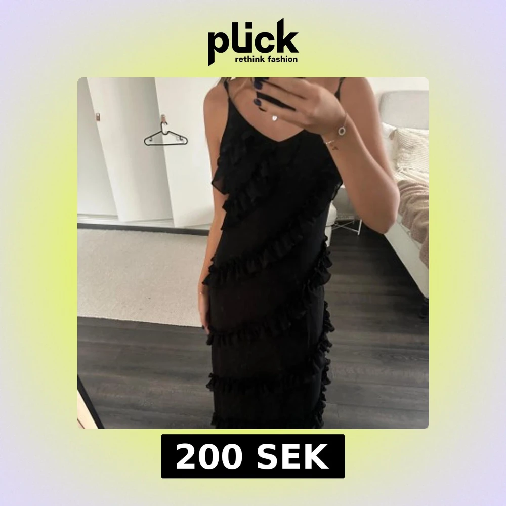 Svart långklänning med volangdetaljer🖤