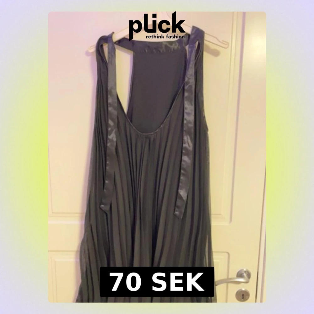 Säljer en mörkgrå omlottklänning med breda axelband i satin och plisserad kjol. Klänningen har ett flowy fall och knytband vid axlarna för en cool touch. Perfekt för dig som gillar en avslappnad men ändå chic stil.