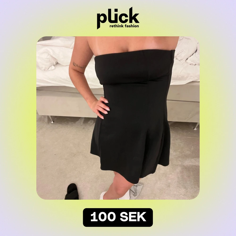 Så snygg kort axelbandslös klänning, aldrig använd, säljer pga kom försent till min 200 dagars och kommer nog inte komma till användning!