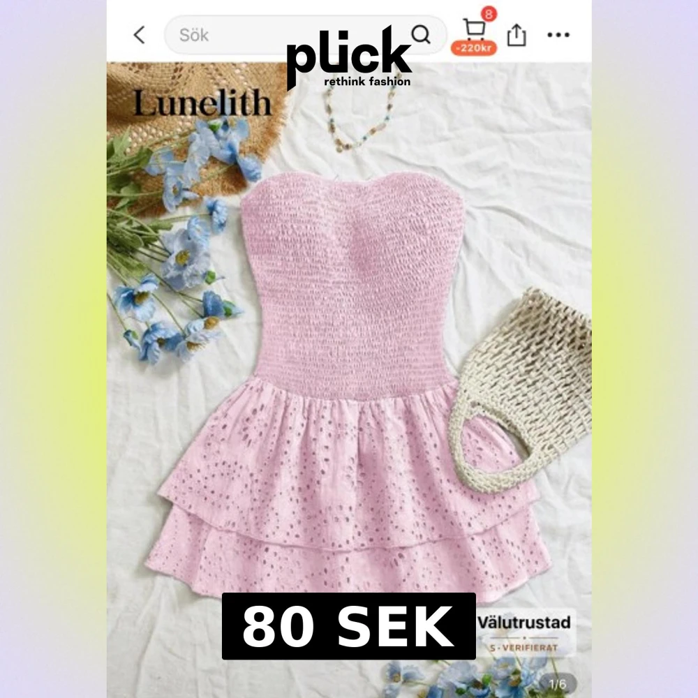 Supersöt ljusrosa klänning från Shein med axelbandslös design och smockad överdel. Perfekt för sommaren. Köpte för 200 kr och aldrig använt 💕
