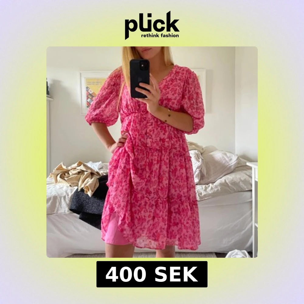 Säljer en superfin rosa-orange kortklänning med blommigt mönster och volangdetaljer. Jag är 160 cm och tycker denna är liiite för lång för mig, går ungefär till knäna 😗