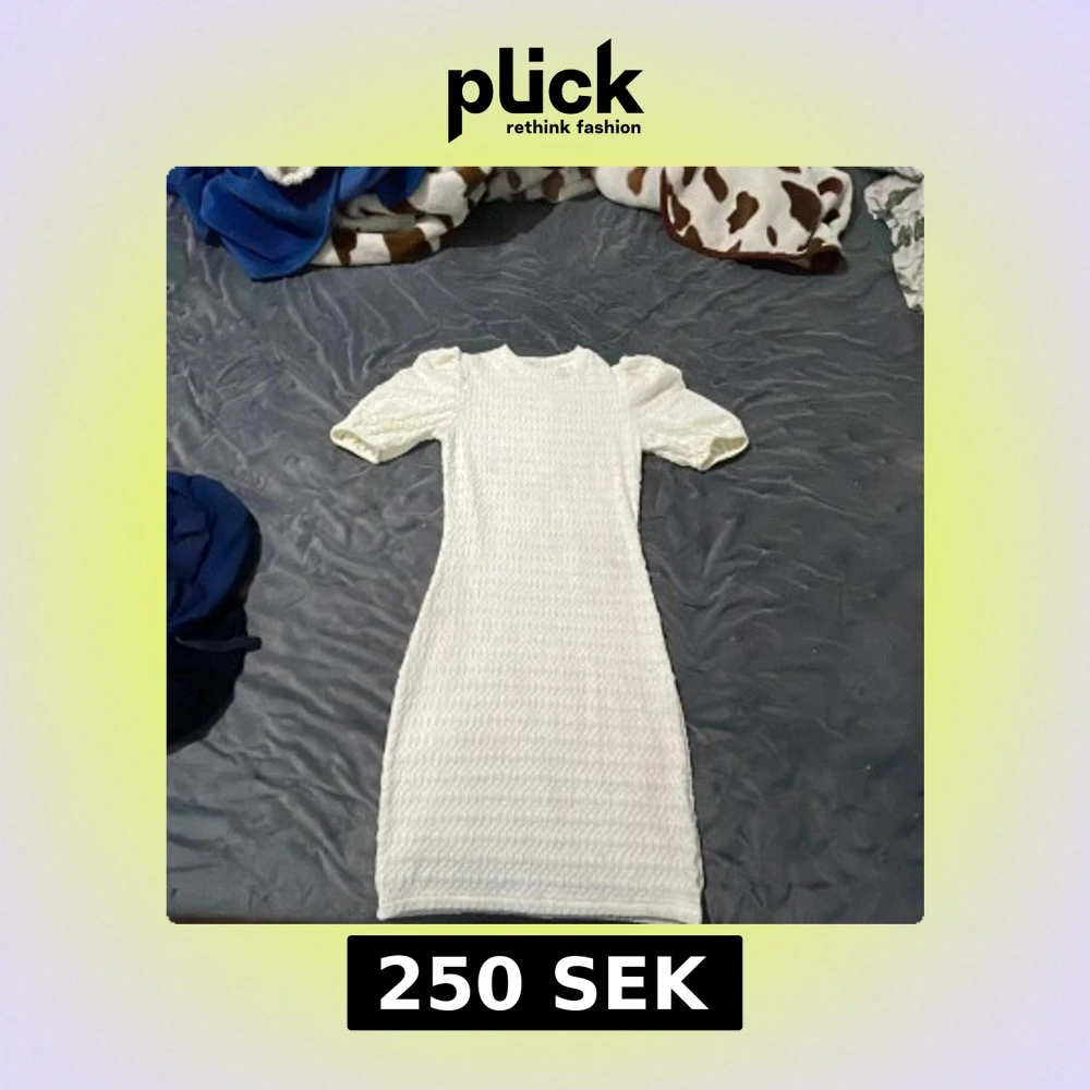 Säljer en söt vit kortklänning med puffärmar och ribbad struktur. Klänningen har en tight passform och är perfekt för sommarens alla tillfällen. Materialet är mjukt och stretchigt för extra komfort.