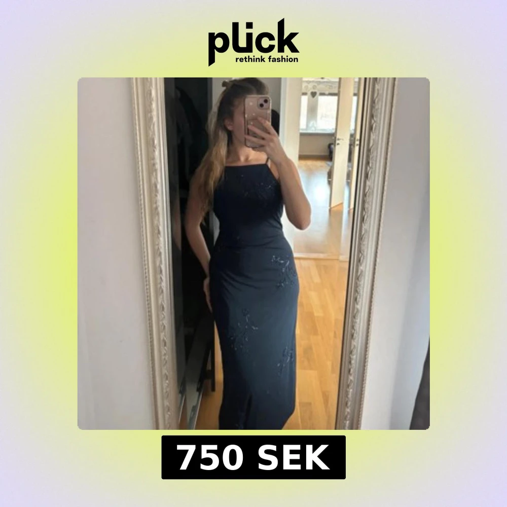 Säljer en elegant mörkblå långklänning. Storlek S, så fina detaljer till. Passar perfekt till balen eller annat festligt tillfälle. Från USA