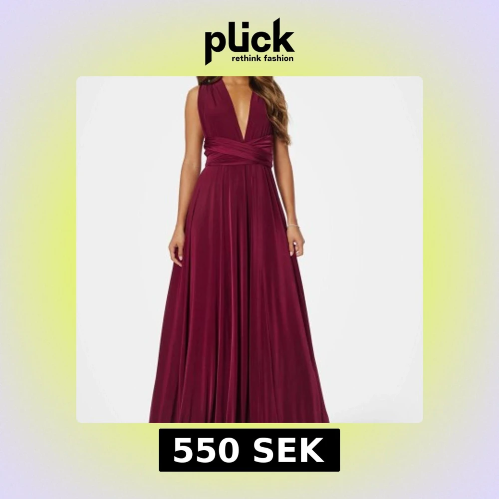 Hej säljer min balklänning som jag har använt en gång,st xs/s. Supersnygg vinröd långklänning med djup v-ringning och öppen rygg. Klänningen har breda axelband som kan knytas på flera sätt och ett svepande, flowy fall. Perfekt för dig som vill sticka ut med en elegant och modern look.