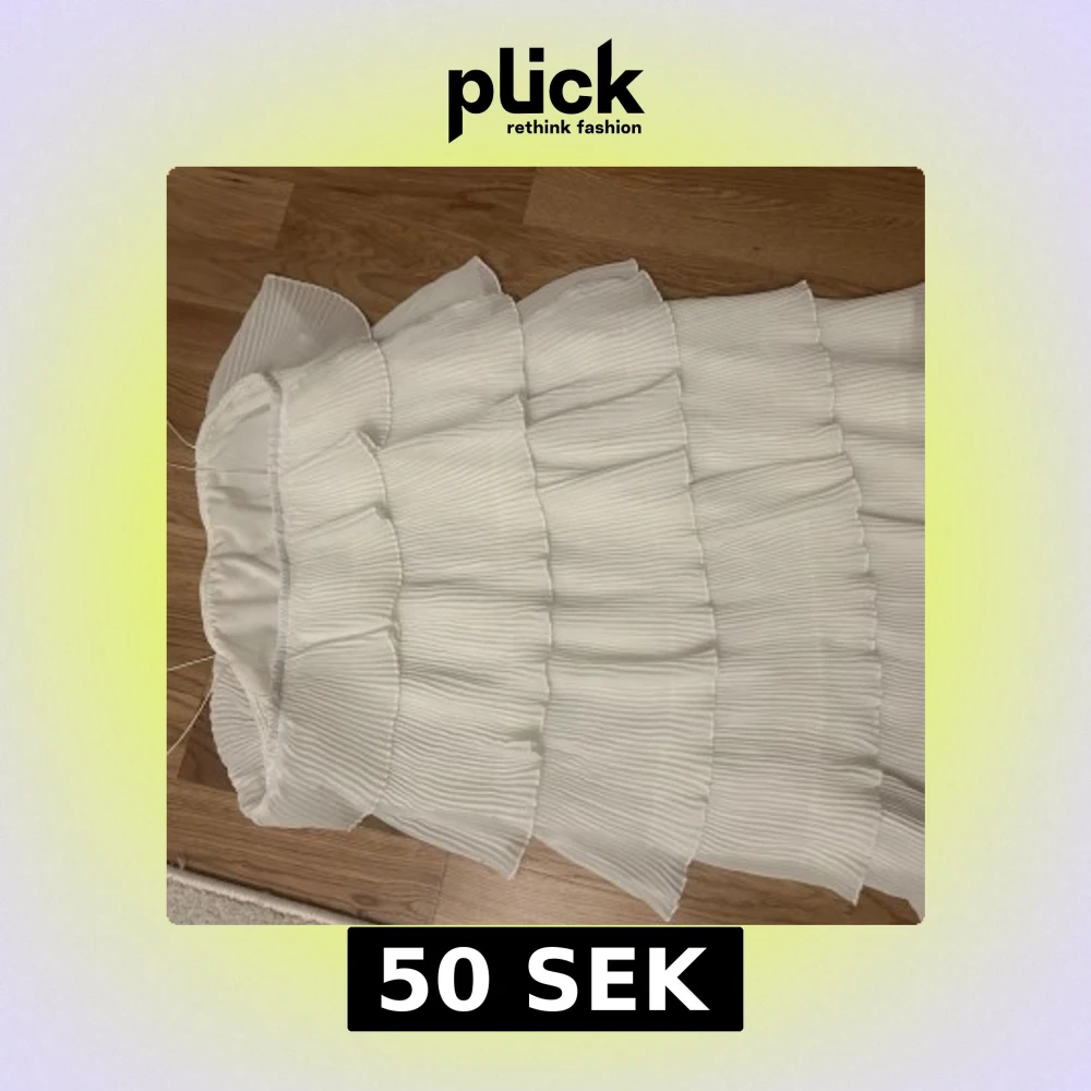 Säljer en elegant vit klänning med volanger. Perfekt för sommarens fester. Klänningen har en luftig och lätt design som ger en romantisk känsla. Passar utmärkt för en stilren look.