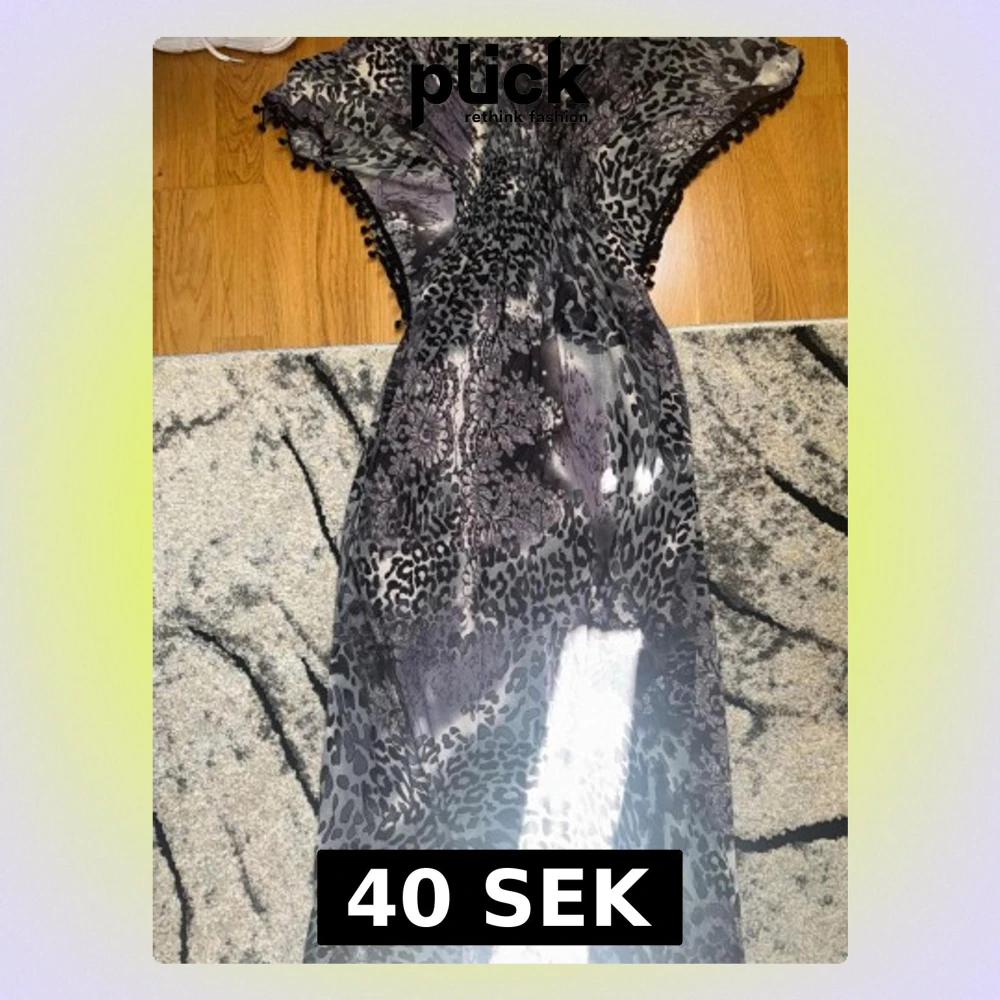 Cool långklänning i svart och grått med leopardmönster och blommiga detaljer. Klänningen har lös passform, korta ärmar och små bollar längs ärmsluten för extra edge. Perfekt för dig som vill sticka ut med ett unikt mönster.