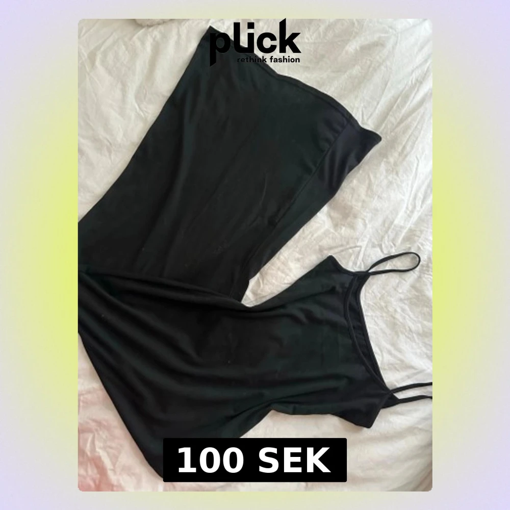 Säljer en svart lång slipklänning med tunna axelband och rak passform. Klänningen har en minimalistisk look och är gjord i ett mjukt, stretchigt material som känns skönt mot huden. Perfekt för dig som gillar enkel och stilren design.