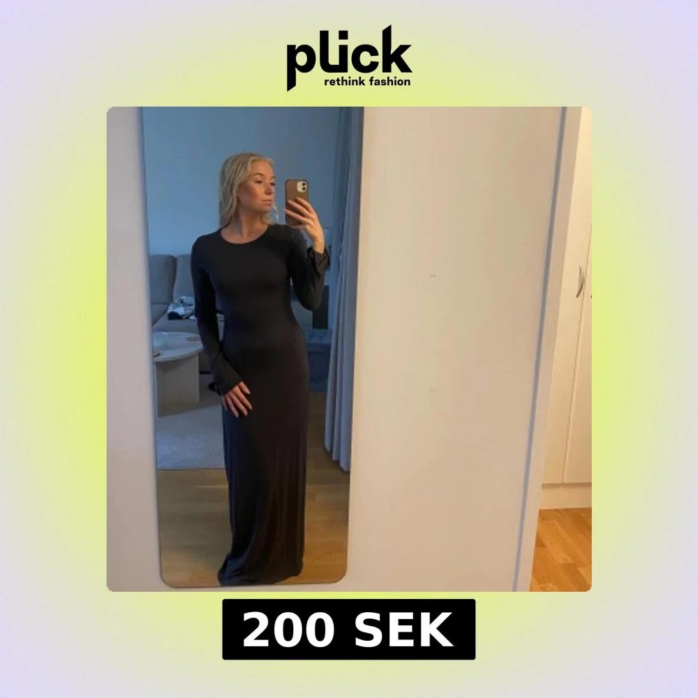 Soft touch klänning från Gina i storlek s i en marinblå/gråblå färg. Klänningen har en tight passform som framhäver figuren och är gjord i ett mjukt, stretchigt material. Enkel och stilren design som känns modern och clean.