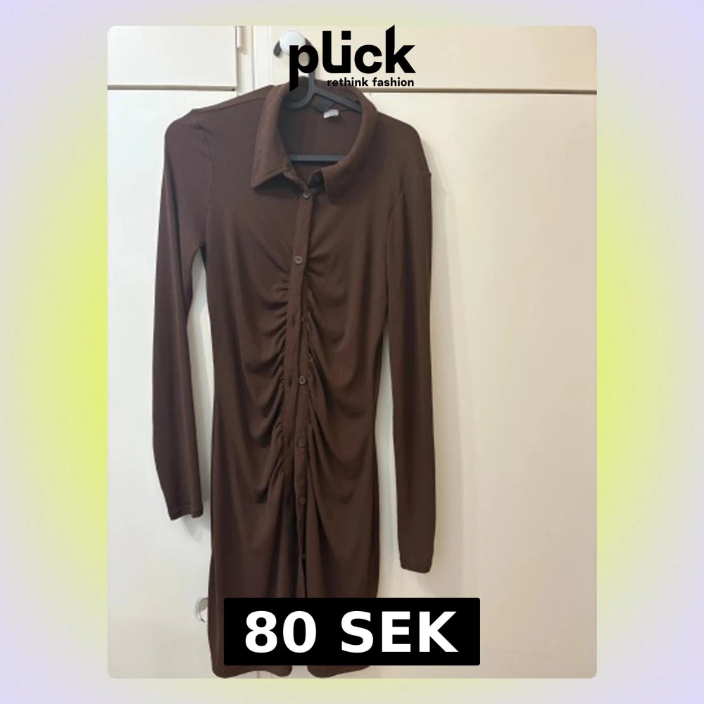 Snygg brun skjortklänning med långa ärmar och knappar hela vägen framtill. Klänningen har en cool rynkdetalj längs knappraden och klassisk krage. Perfekt för dig som gillar stilrena och trendiga plagg med en twist.
