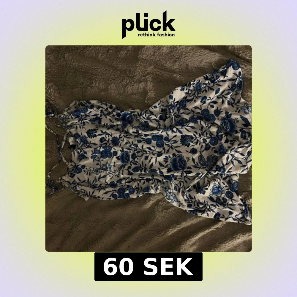 Supersöt kortklänning med blått blommönster på vit botten. Klänningen har smala axelband och en lätt, flowy passform som känns perfekt för varma dagar. Materialet är mjukt och svalt, vilket gör den riktigt skön att bära.