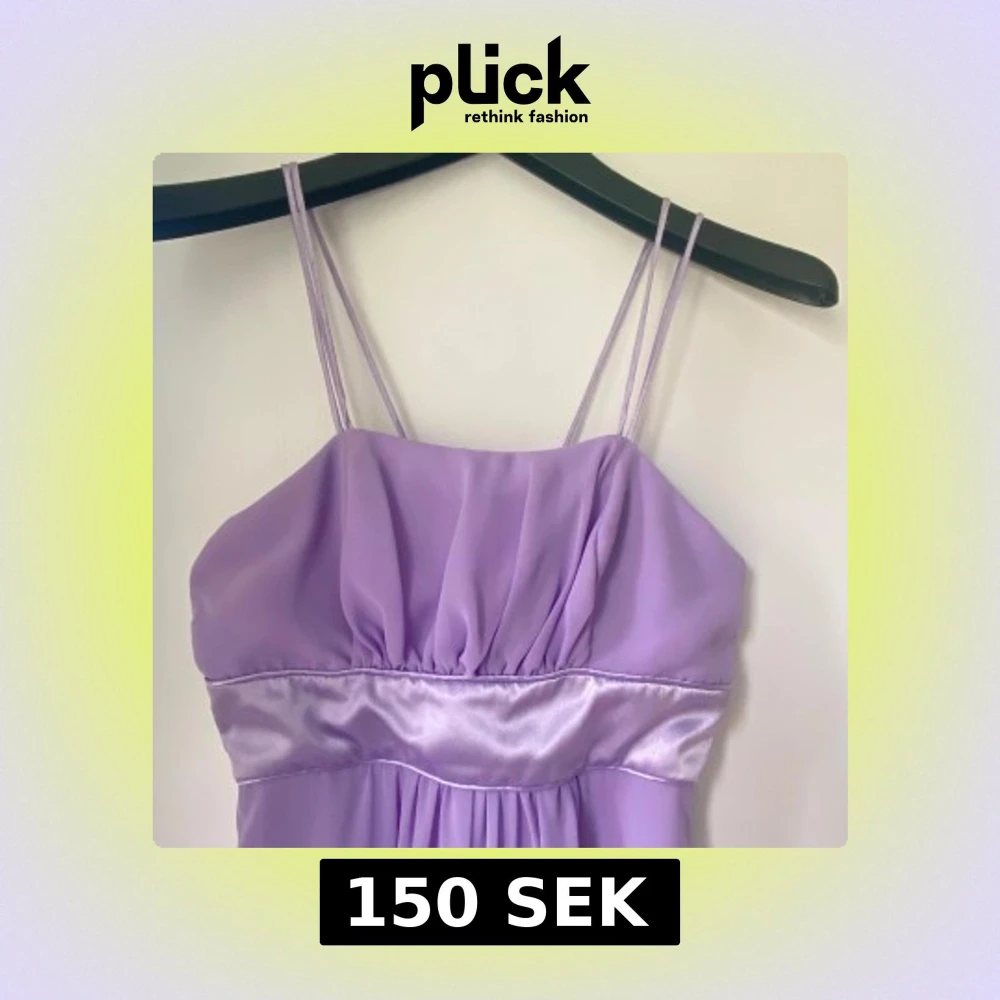 Superfin ljuslila klänning med dubbla smala axelband och ett glansigt satinband under bysten. Klänningen är ärmlös, har lätt vidd i kjolen och stängs med dragkedja bak. Perfekt för dig som vill sticka ut med en söt och feminin look.