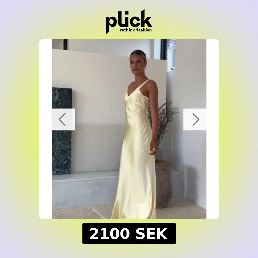 Elegant ljusgul långklänning i siden med smala axelband och korsad rygg. Perfekt för en somrig fest eller bal. Klänningen har en v-ringad fram och en smickrande passform. Ser mycket ut som den som Andie har på sig i filmen ”how to loose a guy in ten days” slutsåld på nätet och går endast att beställa från Australien därav pris, skriv för fler bilder💛💛 HELT NY