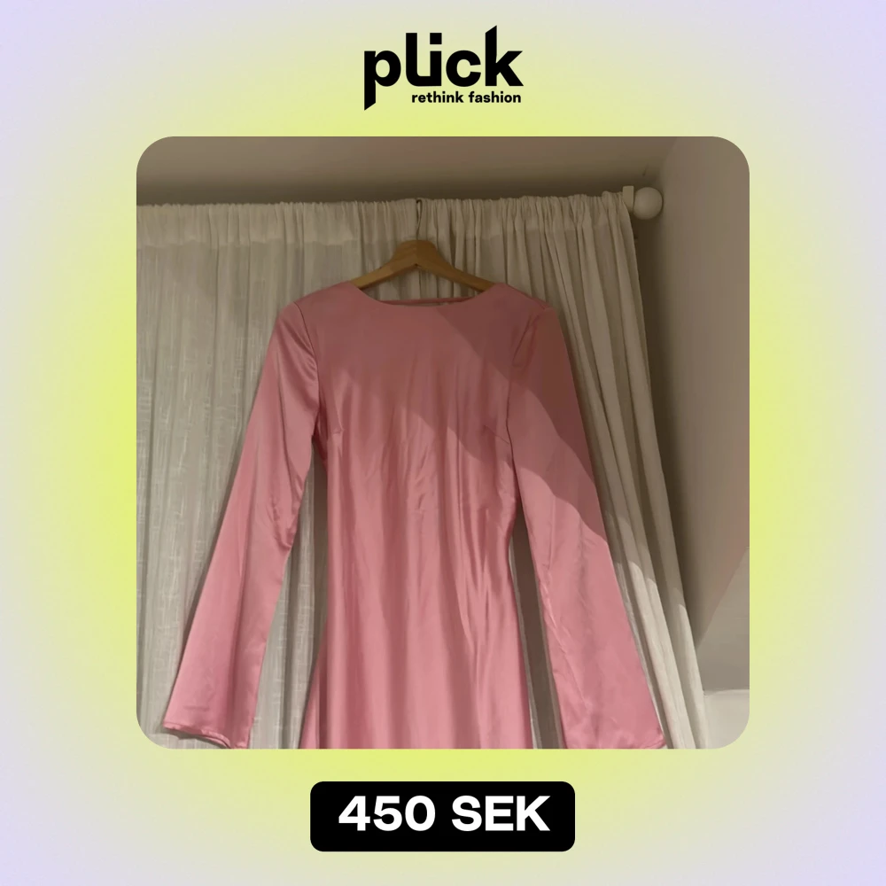 Säljer en superfin rosa klänning i syntetmaterial. Den har långa ärmar och en söt knytning back till som ger en extra detalj. Perfekt för vår och sommar! 💖säljs inte längre svårt att få tag på💗