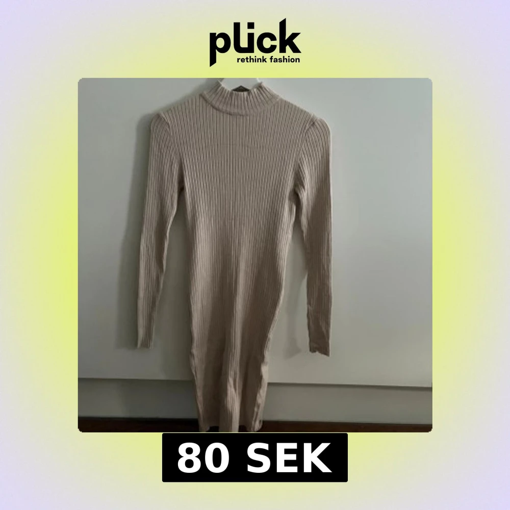 Ribbad beige klänning med lång ärm och hög hals. Modellen är kroppsnära och har en stilren, enkel design som passar perfekt för dig som gillar minimalistiskt mode. Materialet är stretchigt och mjukt, vilket gör den både bekväm och snygg.
