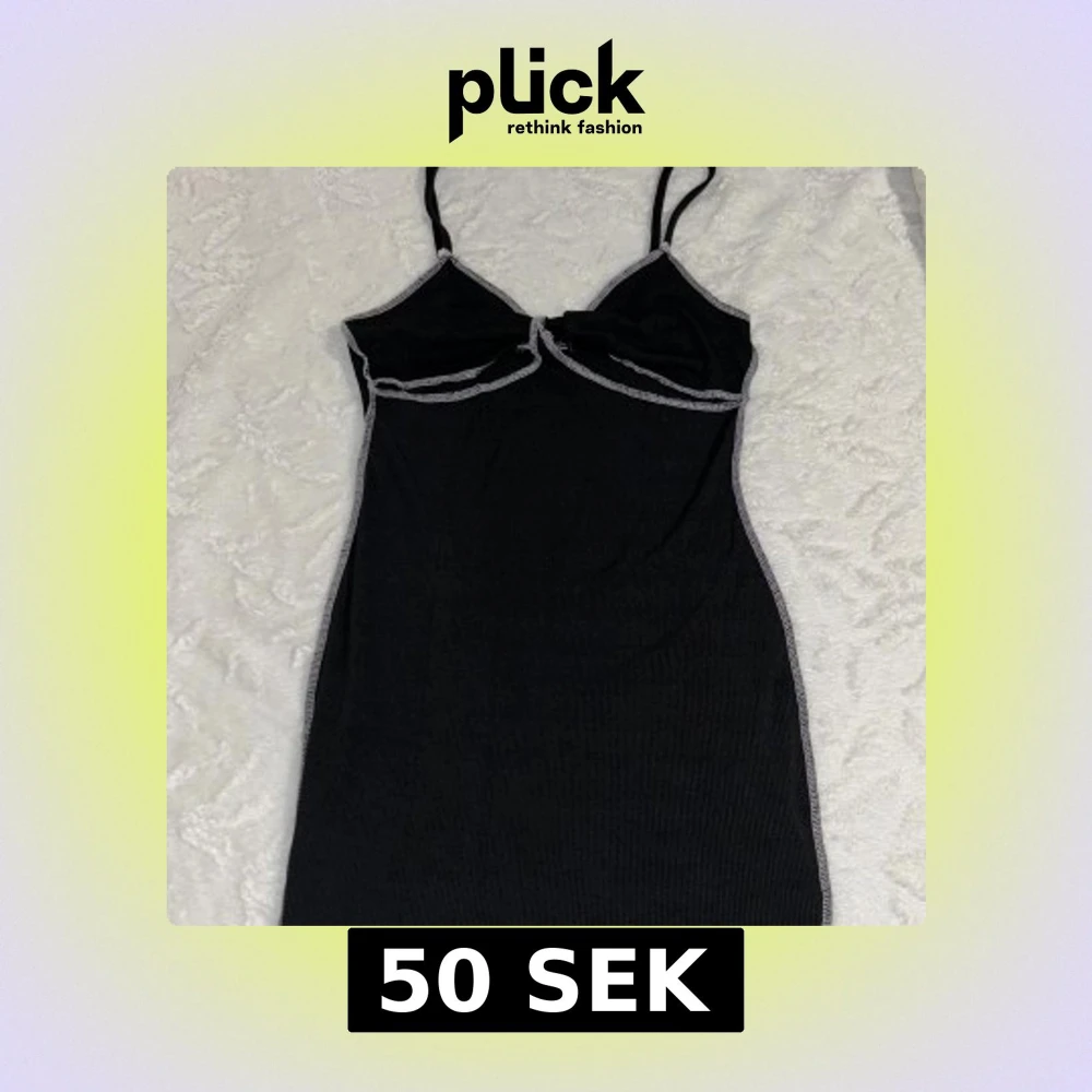 Svart ribbad kort klänning från SHEIN med kontrastsömmar i vitt. Skriv vid frågor 🥰