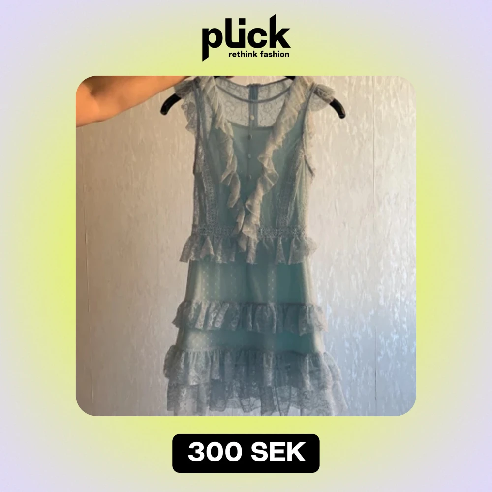 en ljusblå klänning i spets bra skick använd två tre gånger i storlek S passar Xs också